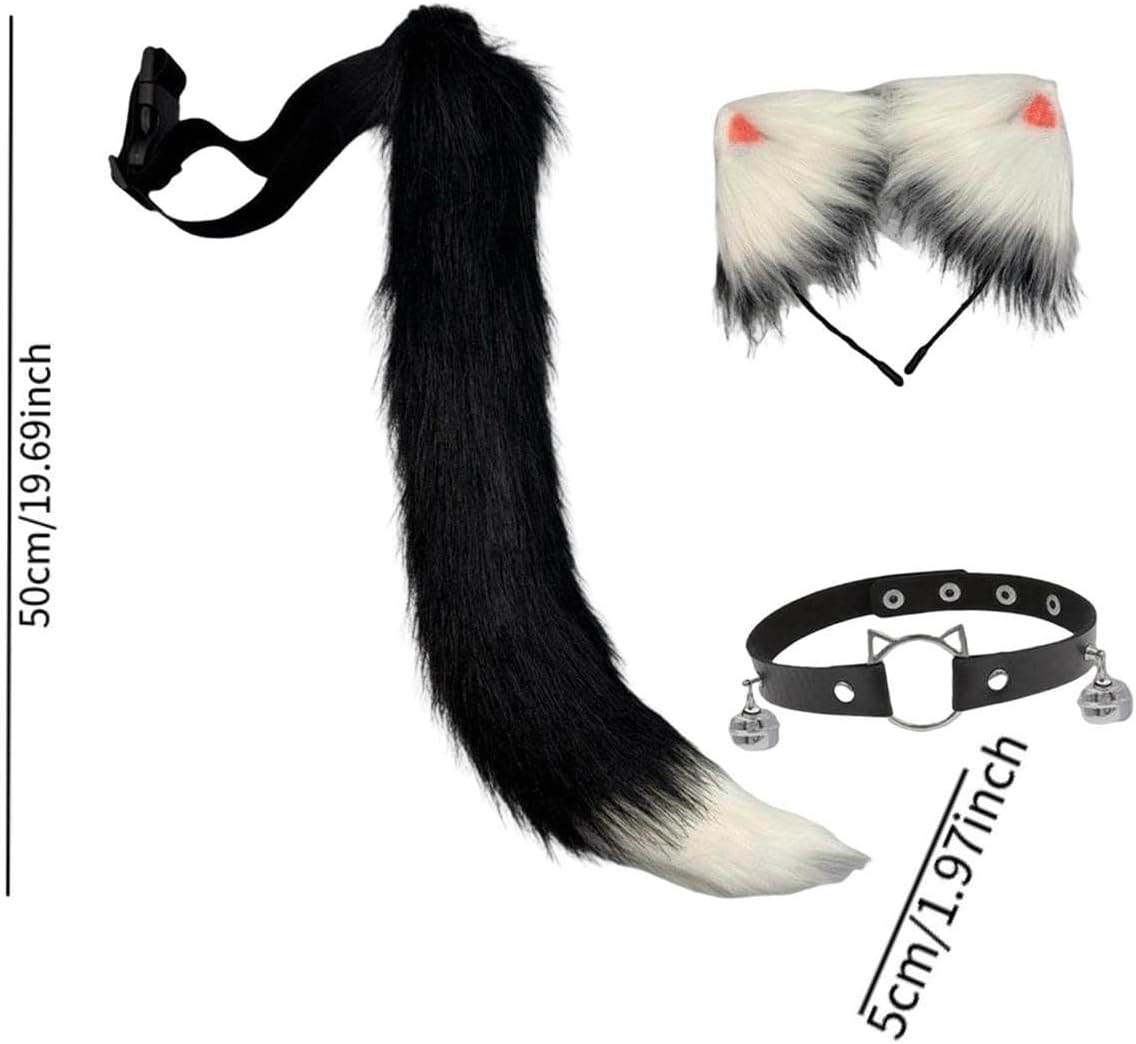 【Materiale di alta qualità】Il set di orecchie e coda è realizzato in peluche di alta qualità, affidabile, leggero e comodo al tatto 【Set Cosplay Animale】: Grazioso set di costumi con orecchie e coda di animali, include 1 fascia per orecchie, 1 coda e 1 collana, ottimo per il cosplay di un gatto o 【Ampie occasioni】Il set cosplay di orecchie e coda è ampiamente adatto per Halloween, feste, carnevali, spettacoli teatrali, oggetti di scena per foto, spettacoli, feste a tema, travestimenti, giochi di ruolo, ecc. 【Ottimo regalo】Questo grazioso e accattivante set di orecchie e coda di gatto è una meravigliosa scelta regalo per amici e familiari in occasione di compleanni, feste, festività, riunioni, ecc. 【Facile da indossare】Questo set di copricapi con orecchie di animali è facile da indossare e da togliere, permettendoti di vestirti rapidamente. La coda ha una cintura regolabile, adatta a persone diverse