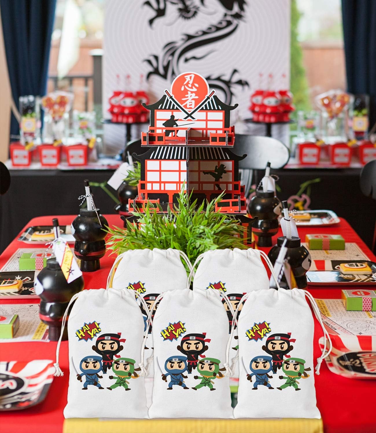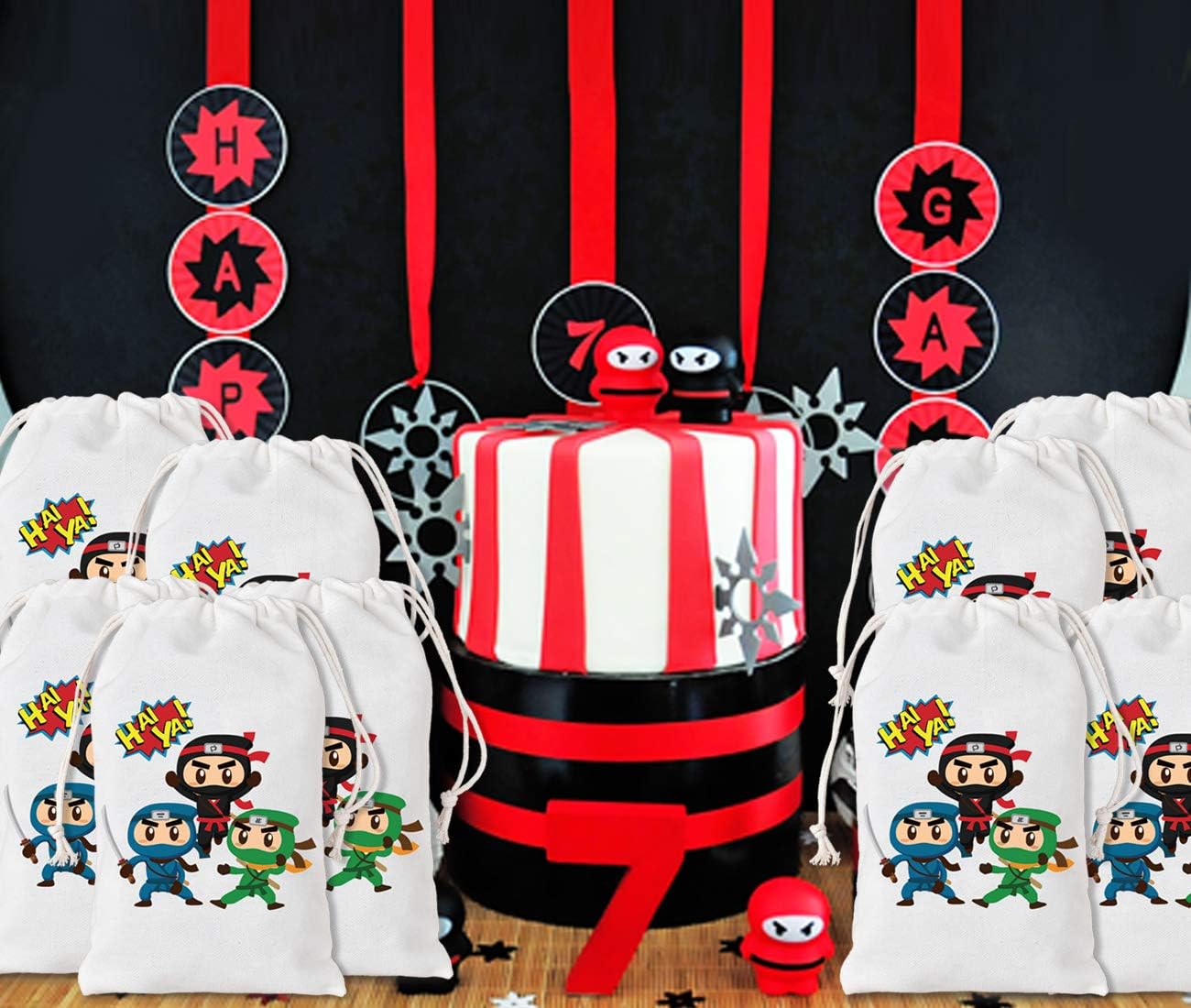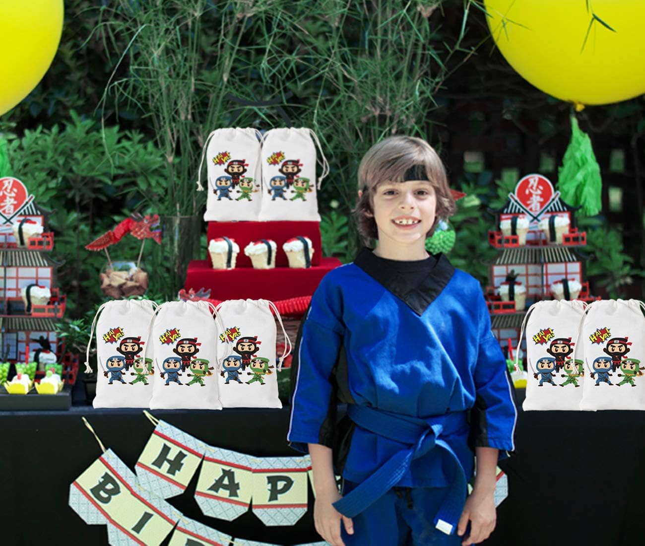 【Preziose borse da festa Ninja】 Il pacchetto include 12 borse ninja con coulisse, stampate con 3 graziosi motivi ninja, quantità sufficiente e più colori per soddisfare le esigenze di decorazione della festa. Materiale e dimensioni della borsa: realizzata in cotone di prima qualità, comoda, riutilizzabile. Dimensioni: 5" x 8", ideale da trasportare e riutilizzare da parte dei bambini, che può ridurre l'uso di sacchetti di plastica ed evitare sprechi. 【Design unico e pratico】Progettato con coulisse, facile da aprire e chiudere; Stampate con bellissimi motivi ninja unici e bellissimi caratteri, queste borse da festa di guerrieri ninja renderanno sicuramente la tua festa diversa dalle altre. Idee per l'uso: puoi utilizzare questi sacchetti per conservare molti regali per le feste come dolci, caramelle, biscotti, snack, bomboniere e piccoli regali e regalarli ai tuoi ospiti. Ovunque vengano posizionati, creano accattivanti decorazioni per le feste. 【Adatto a molte occasioni】 Queste adorabili borse in cotone ninja sono ideali per feste di compleanno di ragazzi o ragazze, feste a tema eroi guerrieri ninja, decorazioni nuziali, forniture per feste baby shower o altri eventi a tema ninja.