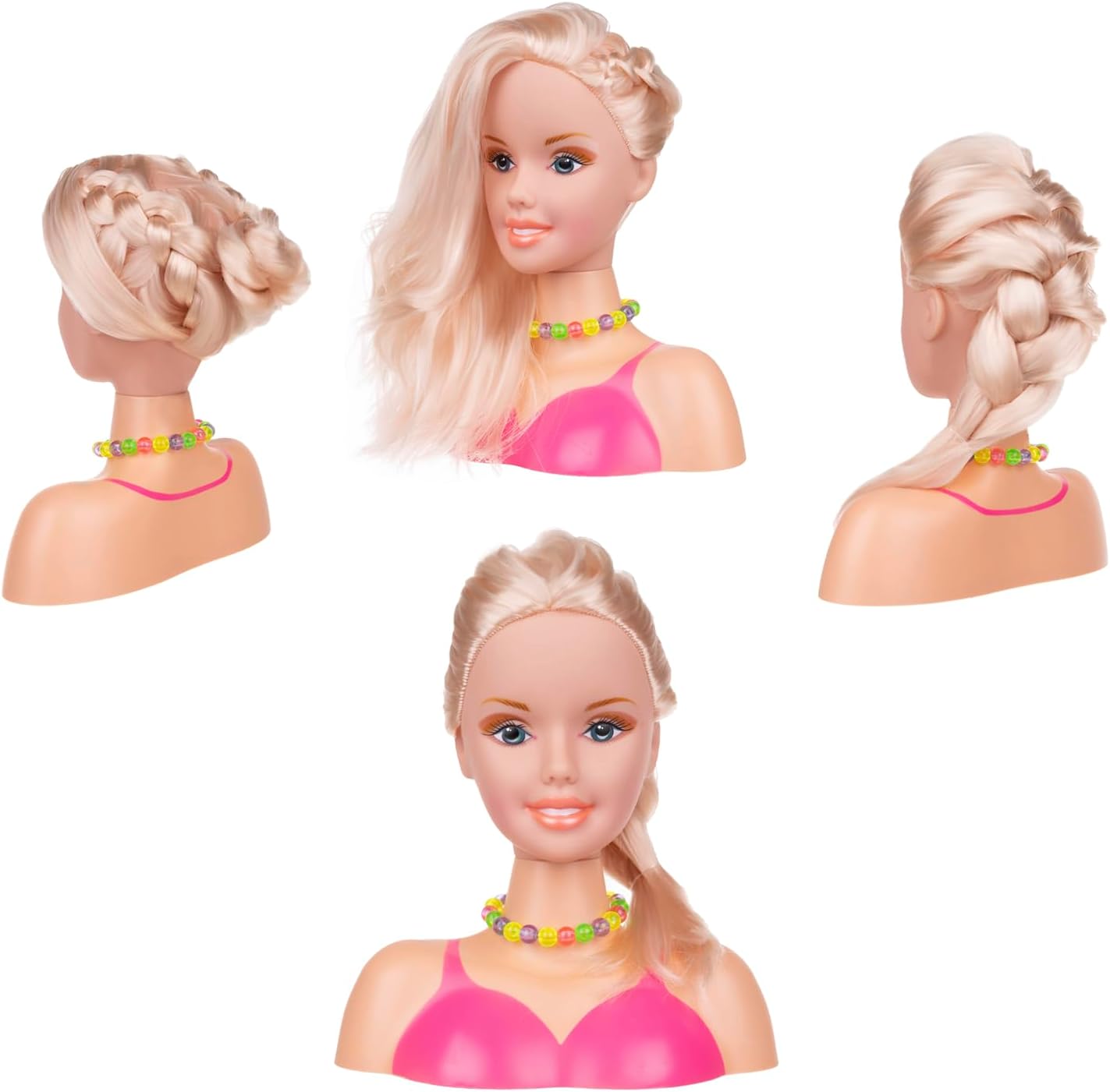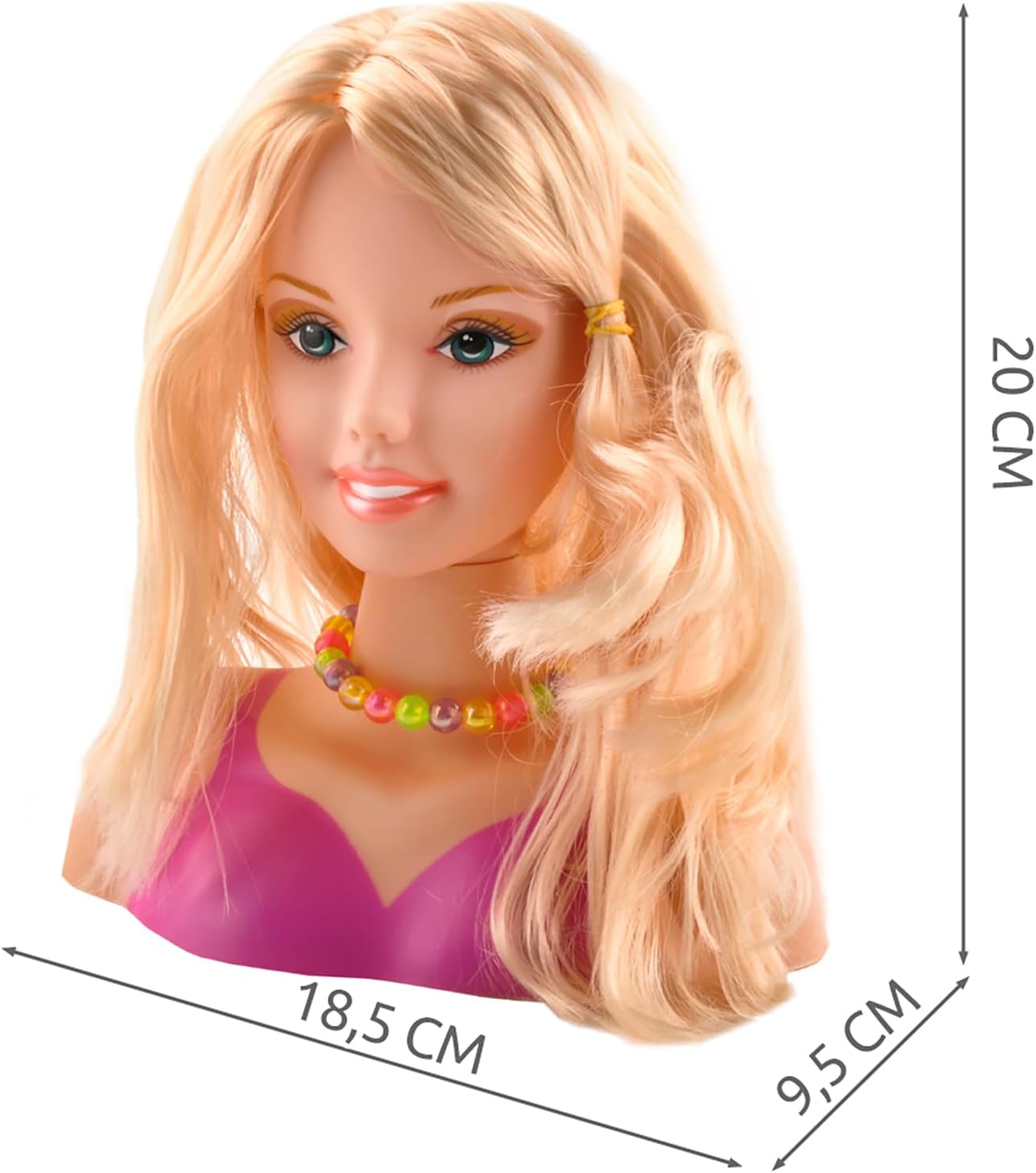 TANTE ACCONCIATURE– il set include un pettine, una fascia per capelli, una collana, fermagli colorati e ciocche colorate e attaccabili. Con questo set puoi creare tantissime acconciature alla moda, trecce coloratissime, code di cavallo, chignon. Non è solo un gioco creativo che sviluppa l'immaginazione, ma anche un allenamento ideale per le abilità manuali . MOLTE POSSIBILITÀ DIVERTENTI : giocare con la testa da styling sviluppa perfettamente creatività e immaginazione: è una possibilità pressoché illimitata di divertirsi nel proprio studio di bellezza. Ogni piccolo stilista e parrucchiere sarà felice di avere l'opportunità di sperimentare su una modella disponibile che non si lamenta di essere tirata mentre si pettina. TESTA ROTANTE - è una caratteristica funzionale che consente al bambino di manipolare la testa senza dover spostare l'intero prodotto. Questo rende il gioco molto più facile e divertente. Inoltre, la funzione di rotazione consente meglio al bambino di immedesimarsi nel ruolo di un vero Hair-Stylist VALORE EDUCATIVO - il prodotto non solo offre divertimento, ma ha anche valore educativo. Aiuta i bambini a sviluppare le loro capacità manuali e la creatività. SPECIFICHE – materiale: PVC, altro: fibra sintetica PP; certificati: CE, EN 71; testa rotante; dimensioni: 9,5 x 18,5 x 20 cm; peso del set: 0,241 kg; peso del set nella confezione: 0,379 kg. SPECIFICHE DEL KIT: materiale: PVC, altro: fibra sintetica PP certificati: CE, EN 71 testa rotante dimensioni: 9,5 x 18,5 x 20 cm peso impostato: 0,241 kg peso del set nella confezione: 0,379 kg INCLUSO: pettine 8 fermagli per capelli colorati 4 fili colorati attaccabili collana