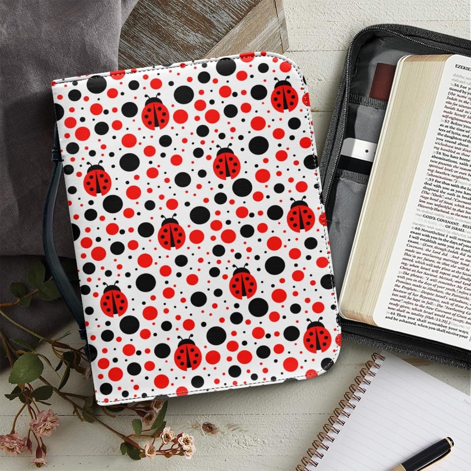 Kuiaobaty Ladybugs - Custodia a libro con tasca per penna, con manico in ecopelle a pois rossi e neri