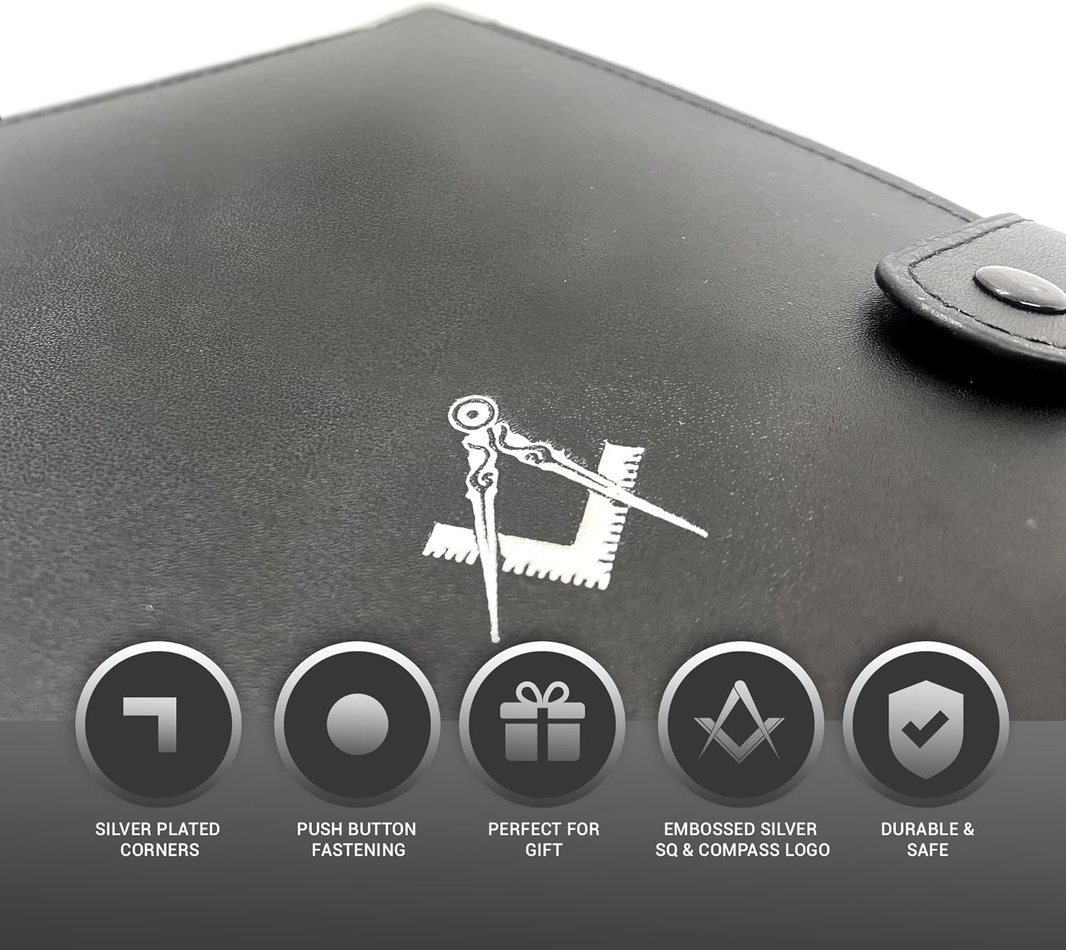Copertina del libro massonico: la nostra copertina del libro rituale in morbida ecopelle in formato biblioteca è progettata per migliorare i tuoi rituali massonici. Realizzato con precisione, combina eleganza e funzionalità per proteggere il tuo libro rituale, rendendolo degno di ogni occasione massonica. COPERTINA PREMIUM PER LIBRO RITUALE: migliora i tuoi rituali massonici con questa copertina per libro in ecopelle premium. Realizzato con precisione e caratterizzato da un elegante interno in ecopelle beige, combina stile e resistenza per proteggere il tuo libro rituale. REGALO PERFETTO: questa copertina per libro rituale massonico in ecopelle di alta qualità, con il suo elegante interno in ecopelle beige, è un regalo ideale per un massone. Migliora la loro esperienza massonica con questo accessorio premuroso e durevole, perfetto per ogni occasione. Copertina del libro a chiusura facile: questa copertina del libro presenta una parte anteriore marchiata con l'emblema massonico e un comodo meccanismo di chiusura facile. Progettata per libri rituali in formato A5, questa è una copertina di qualità in formato biblioteca, che garantisce che i tuoi rituali massonici rimangano protetti e accessibili. SIGNIFICATO MASSONICO MIGLIORATO: questa copertina del libro presenta il logo Squadra e Compasso e angoli placcati in argento, aumentandone il significato massonico, rendendolo un regalo significativo per i Massoni.
