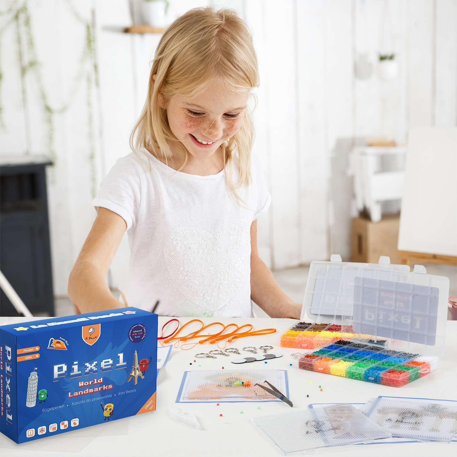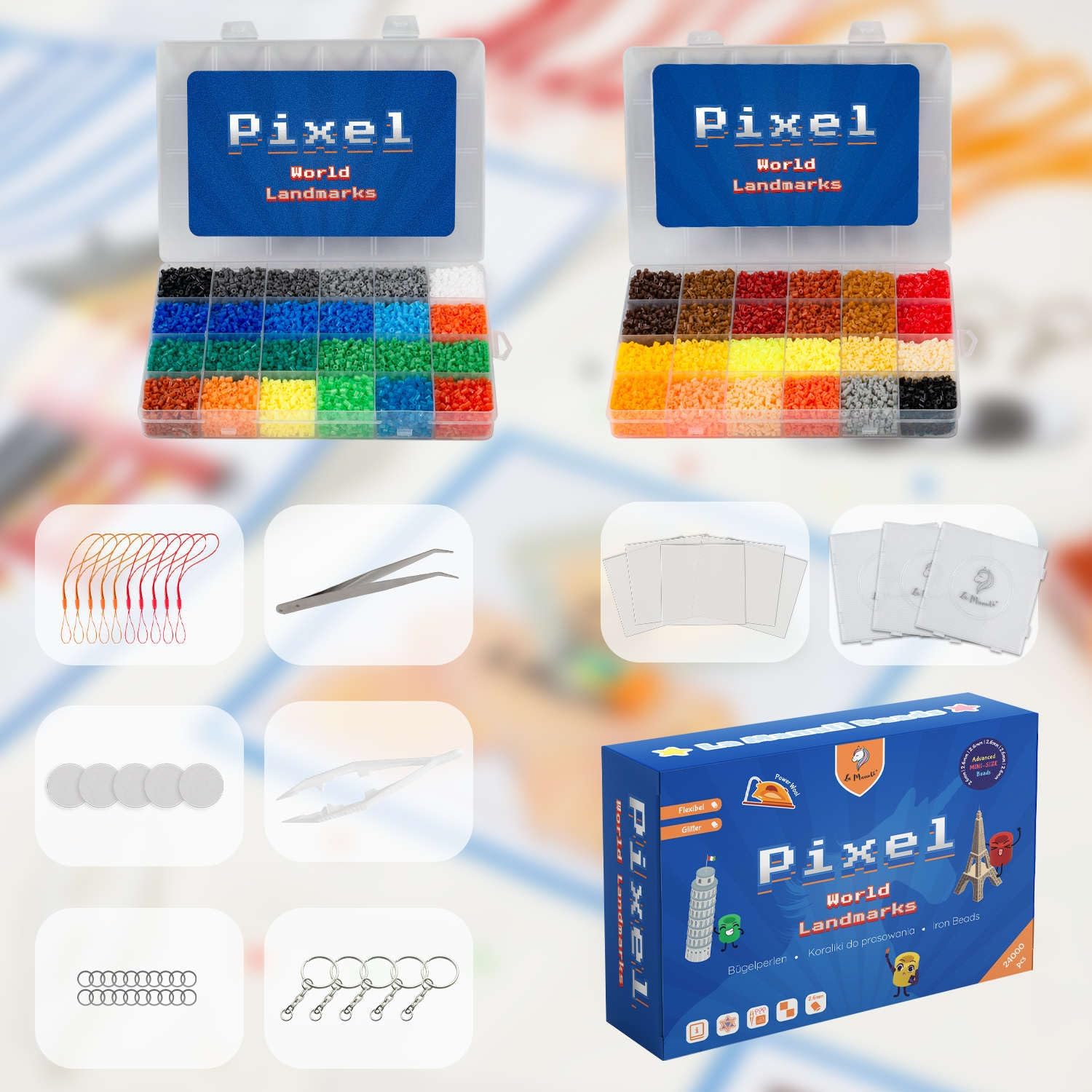 Ideale per progetti complessi: Il set include 24.000 perline da stirare da 2,6 mm, organizzate in 32 colori vivaci, incluse perline glitterate per creazioni scintillanti. Perfetto per bambini dai 12 anni e per creatori esperti che vogliono superare i limiti della loro creatività 12 modelli ispirati a monumenti mondiali: Il kit offre 12 modelli basati su famosi monumenti come la Torre Eiffel, il Colosseo e la Statua della Libertà. Adatto sia ai principianti che agli utenti più esperti, stimola la scoperta della geografia e dell'architettura mondiale Tutto il necessario per creare e decorare: Include 3 grandi piastre quadrate, 5 fogli da stirare resistenti al calore, ganci, portachiavi, anelli e altri accessori per trasformare le creazioni in oggetti decorativi unici. Inoltre, sono incluse una pinza in plastica e una pinza in metallo per una manipolazione precisa Sviluppa abilità nel pixel art e nella motricità fine: Le perline mini da 2,6 mm migliorano la motricità fine, la coordinazione occhio-mano e la concentrazione, offrendo un'attività creativa e formativa per bambini e adulti Una scelta responsabile per i genitori: Realizzate in materiale EVA atossico, queste perline sono sicure per i bambini. Il kit incoraggia l'espressione creativa e lo sviluppo di nuove competenze, rendendolo un investimento educativo e divertente per tutta la famiglia