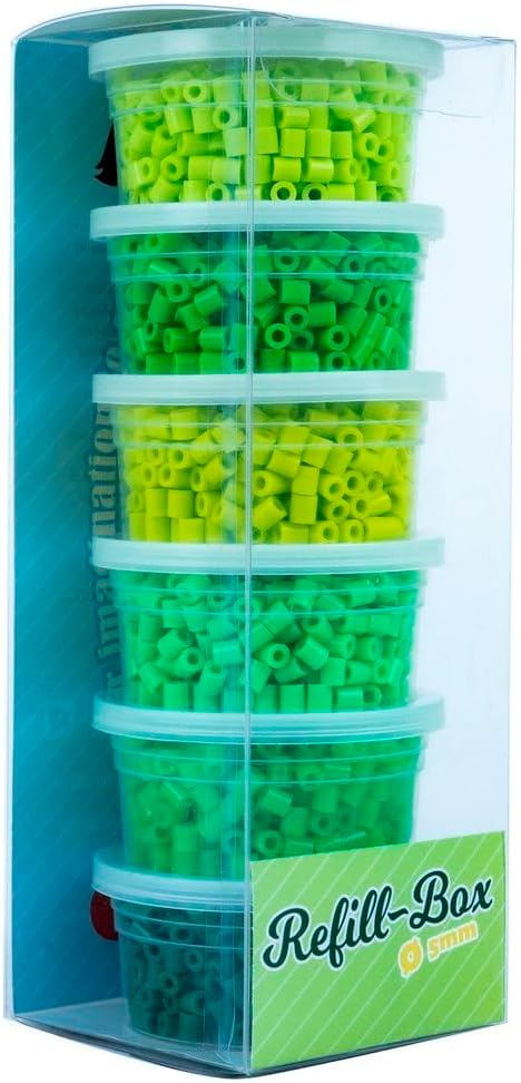 La Manuli perline da stirare verde: Risveglia la tua creatività con 3000 perline da 5 mm in sei fresche tonalità di verde, perfette per progetti fai da te ispirati alla natura Sei sfumature di verde ispirate alla natura: Dai verdi tenui che ricordano le giovani foglie ai verdi profondi delle foreste, questo kit offre una palette completa per creazioni vivaci e naturali, ideali per motivi floreali o paesaggi verdeggianti Facile da usare e perfettamente organizzato: Ogni colore è separato in contenitori distinti per facilitare la scelta della tonalità giusta durante la creazione del progetto Materiali sicuri e atossici: Le perline La Manuli sono realizzate in materiali atossici e sicuri per i bambini, adatte per tutte le età e perfette per sviluppare abilità manuali e artistiche Ideale per creazioni di gioielli e decorazioni: Perfette per realizzare gioielli, ornamenti e decorazioni per diverse occasioni, ideali come regalo o per un'attività rilassante dopo una lunga giornata