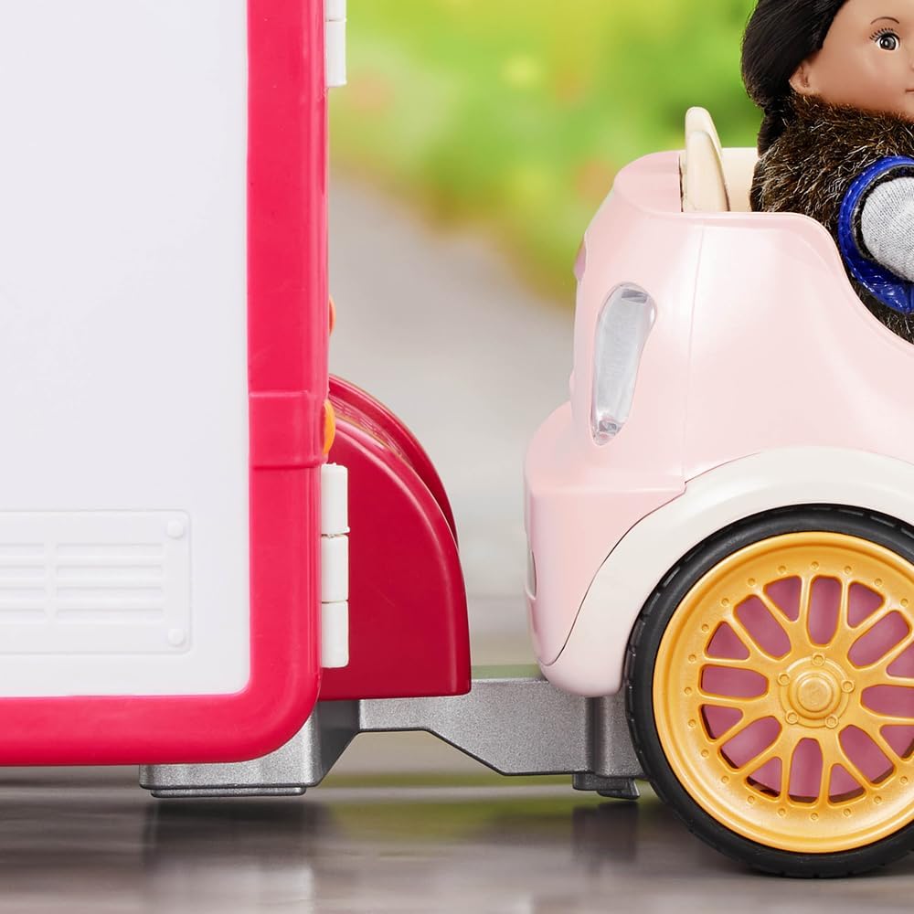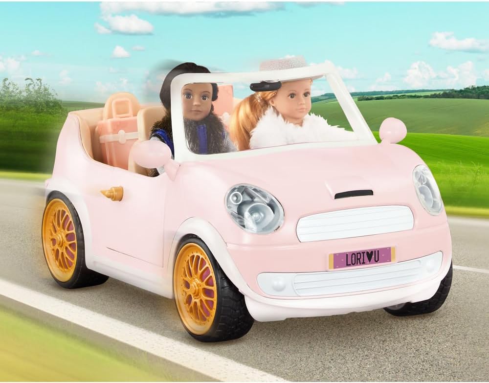 Descrizione del prodotto Parti per un'avventura con le tue migliori amiche bambole e la Lori Cabrio rosa per bambole da 15 cm. Questa affascinante mini bambola decappottabile è dotata di radio funzionante con trasmettitori AM e FM, così le tue bambole potranno ascoltare le loro canzoni preferite mentre guidano. Questa fantastica macchina è dotata di dettagli realistici all'interno e all'esterno per un divertimento ancora maggiore. Può contenere fino a quattro bambole (o i loro animali domestici). La decappottabile si collega facilmente al rimorchio per cavalli Lori o al camper Lori Glamper con un gancio integrato. Le bambole Lori sanno come divertirsi e questa decappottabile le permette davvero di andare ovunque la loro immaginazione le porti. Avvertenza di sicurezza: non adatta a bambini di età inferiore a 3 anni. Contiene piccole parti che potrebbero essere ingerite. Rischio di soffocamento.
