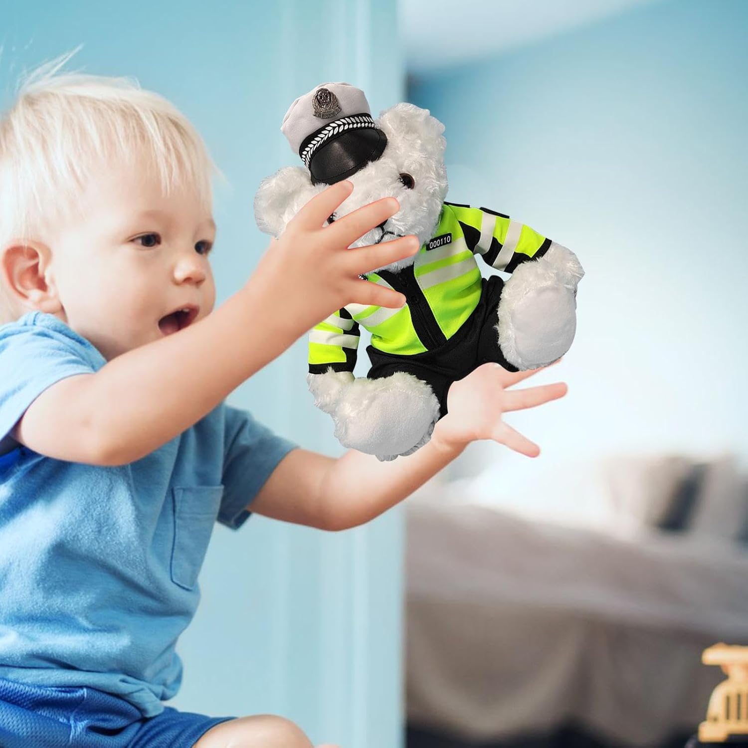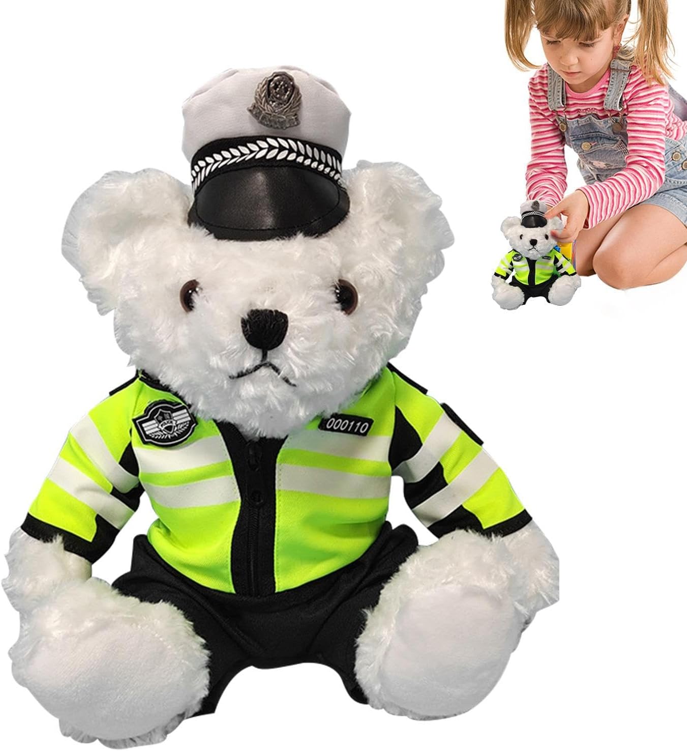 [Orso vestito con abiti della polizia] Questo orso di peluche è vestito con poliziotti rimovibili o abiti da hostess, che lo rendono un giocattolo divertente e versatile per i bambini. Ha un buon processo di cucito e un mestiere delicato realistico, che gli conferisce una forma e un tocco morbido [Una decorazione affascinante] Questo orsetto di peluche è un'aggiunta carina e accogliente al tuo spazio. Puoi posizionarlo nella tua camera da letto, soggiorno o auto per aggiungere fascino e lucentezza. È anche morbido e coccoloso, il che lo rende un ottimo compagno per bambini e adulti. [Peluche super morbido] Questo orsetto imbottito è realizzato in peluche super morbido, privo di lanugine e delicato sulla pelle. È imbottito con cotone PP che lo rende estremamente confortevole al e avvolgente. [Un amico e un partner] I tuoi bambini adoreranno avere questo orsetto imbottito come loro amico e partner, in quanto può farli sentire sicuri e protetti. Può anche aiutarli a sviluppare abilità sociali ed empatia, poiché possono interagire con esso e condividere i loro sentimenti. [Adorabile ] Sorprendi la tua famiglia e i tuoi amici con Polices Dress Teddys Bear che li farà sentire amati e amati. Questo simpatico giocattolo è l'ideale per ogni occasione, come compleanni, Natale o altri festival.
