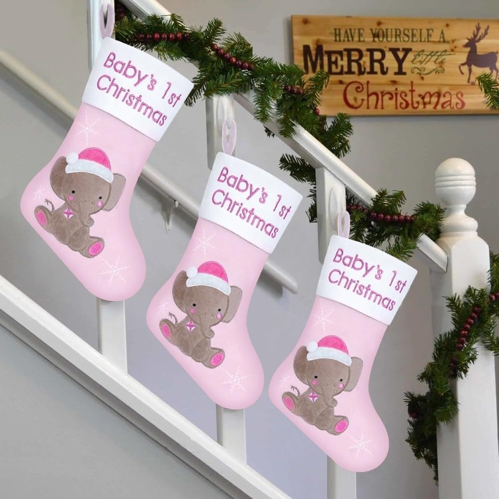 【Ricordo delle vacanze】 La prima calza di Natale del bambino cattura la gioia del primo Natale di tuo figlio con un affascinante disegno di calza di Natale stampato elefantino in rosa delicato per aggiungere calore e atmosfera al tuo arredamento natalizio. 【Materiale morbido e delicato】 Realizzato in tessuto con una trama morbida per un tocco delicato, sicuro per le mani dei più piccoli e aggiunge comfort e fascino alla tua decorazione natalizia, rendendola visivamente accattivante e adatta alla famiglia. 【Spazio generoso】: misura 14 pollici di lunghezza per 8,5 pollici di larghezza e 6,5 pollici di larghezza del polsino, questa calza offre molto spazio per piccoli giocattoli, dolcetti o sorprese per rendere magica la mattina di Natale per il tuo bambino.