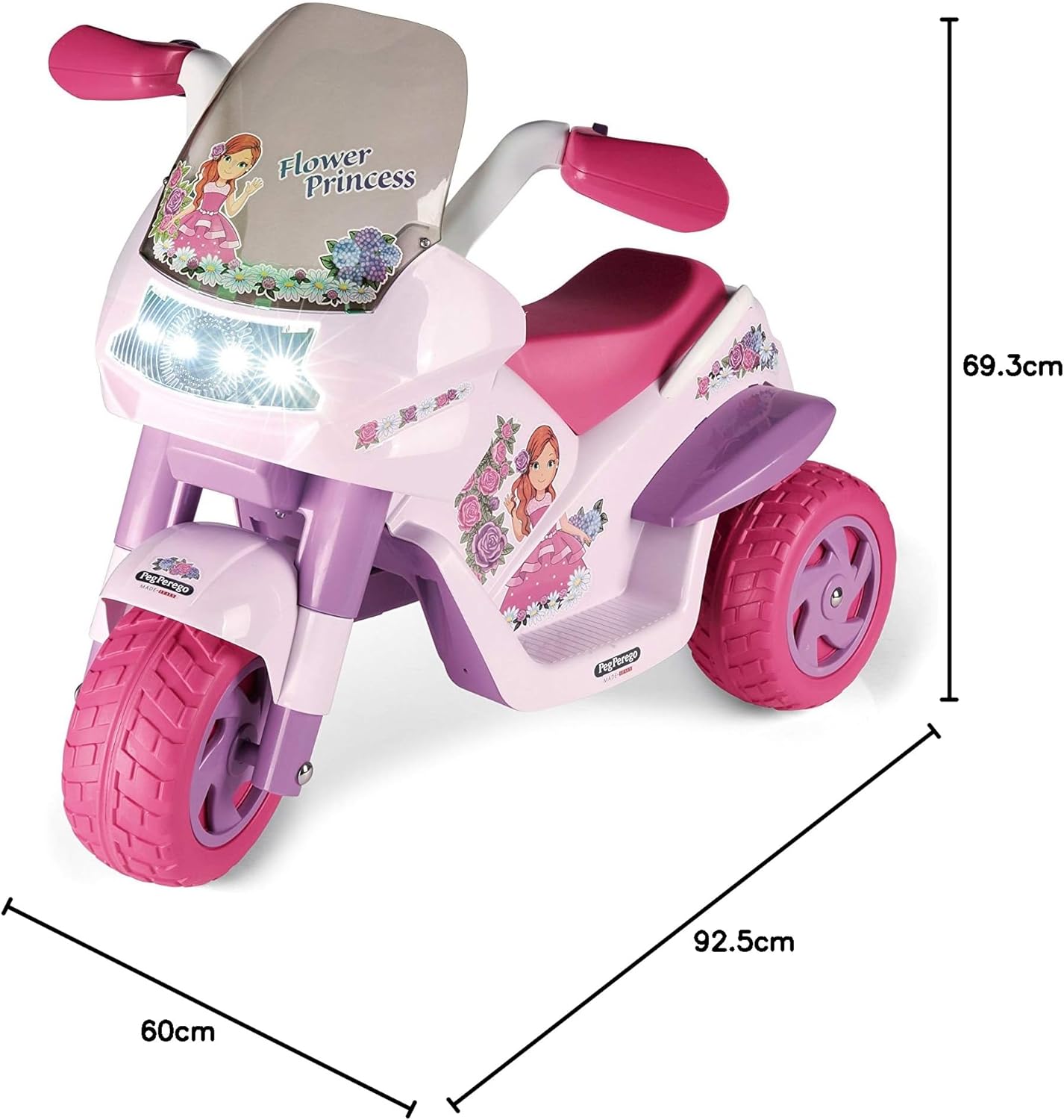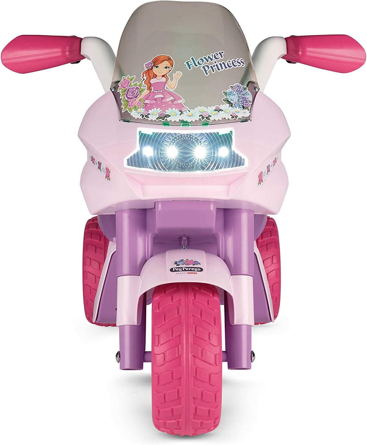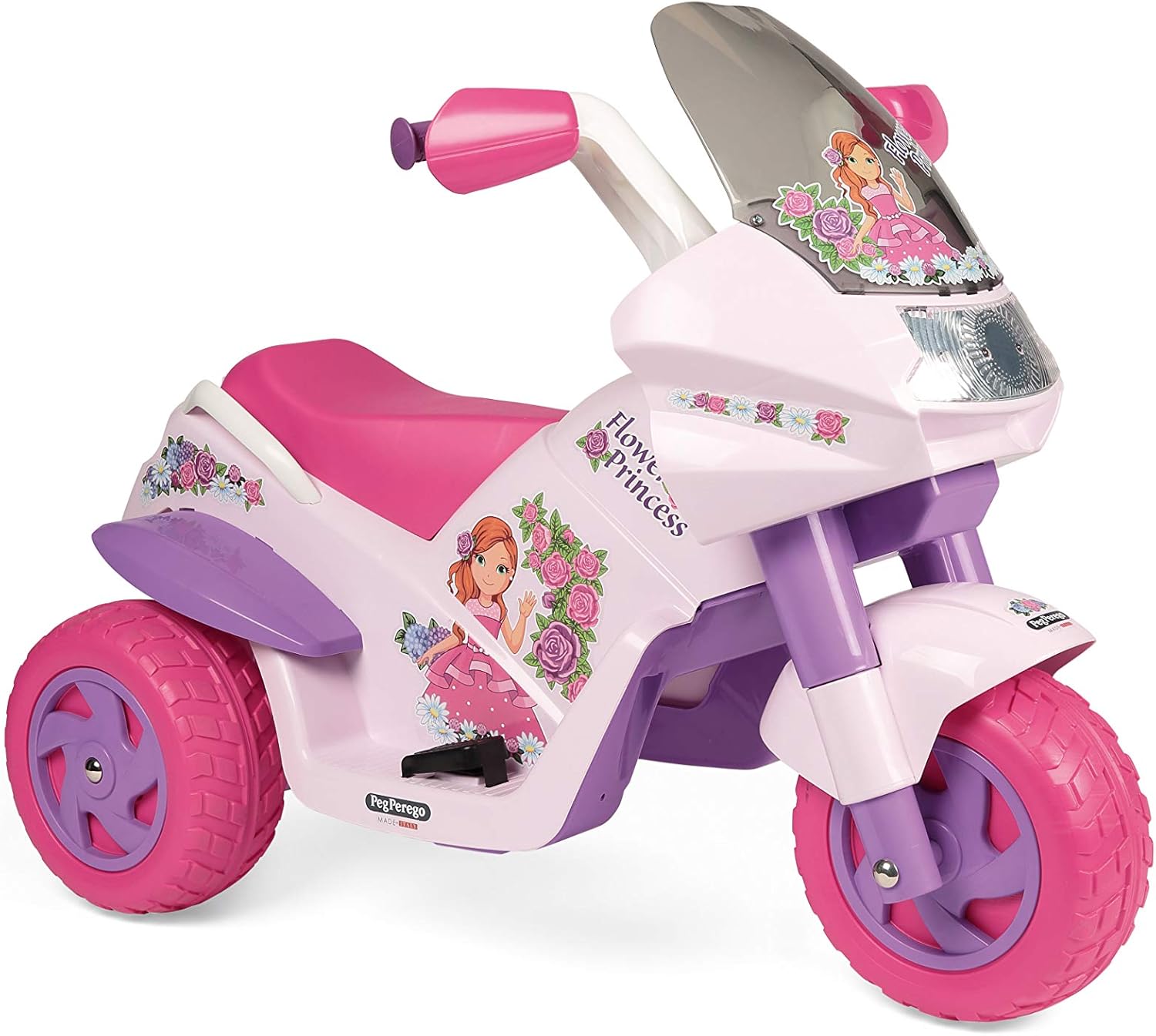 Peg Perego Flower Princess Flower Princess è la fantastica moto elettrica con batteria ricaricabile da 6 V/4,5 Ah per bambini dai 2 anni Flower Princess è una fantastica moto elettrica con batteria ricaricabile da 6 V/4,5 Ah adatta per i bambini dai 2 anni