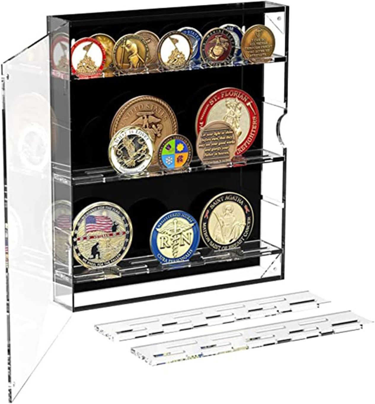 Trasforma la tua parete in un'esposizione delle tue spille e accessori preferiti. Le monete acriliche vengono visualizzate come oggetti decorativi, rendendole un must per coloro che apprezzano entrambe le organizzazioni. Questo portamonete è progettato con cura con 5 strati e offre ampio spazio per contenere oggetti mentre l'acrilico offre durata ed eleganza. Migliora la decorazione di una stanza con questi versatili organizzatori; Adatto per l'uso in camere da letto, locali artigianali o piccole imprese dove oggetti da collezione e accessori possono aggiungere un tocco di eleganza. Per collezionisti, artigiani e appassionati di moda, questo disco da esposizione è per chiunque desideri organizzare ed esporre la propria preziosa collezione di spille o gioielli. Metti in mostra la tua collezione di monete con la Coin Display Card in acrilico, un organizer con una copertina magnetica trasparente