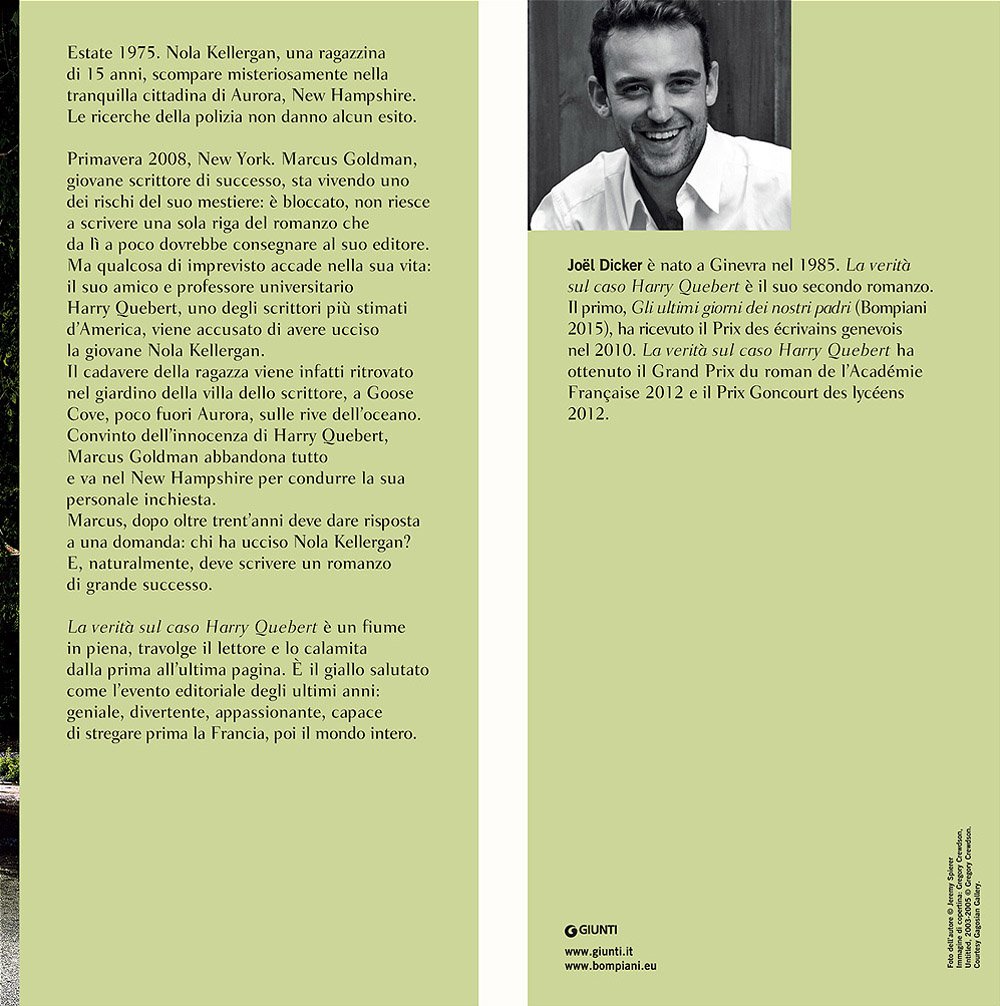 Siamo ad Aurora, nel 1975: una tranquilla cittadina costiera affacciata sull’oceano. In una mattina d’estate, una tragica notizia sconvolge la comunità: la quindicenne Nola Kellergan è scomparsa. Il romanzo si sviluppa su due linee temporali, elemento che ho trovato particolarmente efficace e avvincente. Dal 1975 veniamo catapultati al 2008, quando un famoso scrittore viene accusato della morte di Nola. Il suo migliore amico, Marcus Goldman, intraprende un’indagine privata per portare finalmente alla luce la verità nascosta. Nonostante le oltre 700 pagine, La verità sul caso Harry Quebert è un romanzo scorrevole e mai noioso: inizi a leggerlo spinto dalla curiosità e, senza quasi accorgertene, arrivi alla fine. Ho amato il protagonista Marcus Goldman e i personaggi secondari, ciascuno con una propria personalità e con un segreto celato nel profondo del cuore. Credo che uno dei compiti di uno scrittore sia far innamorare il lettore dei suoi personaggi, e in questo Joël Dicker è riuscito perfettamente.