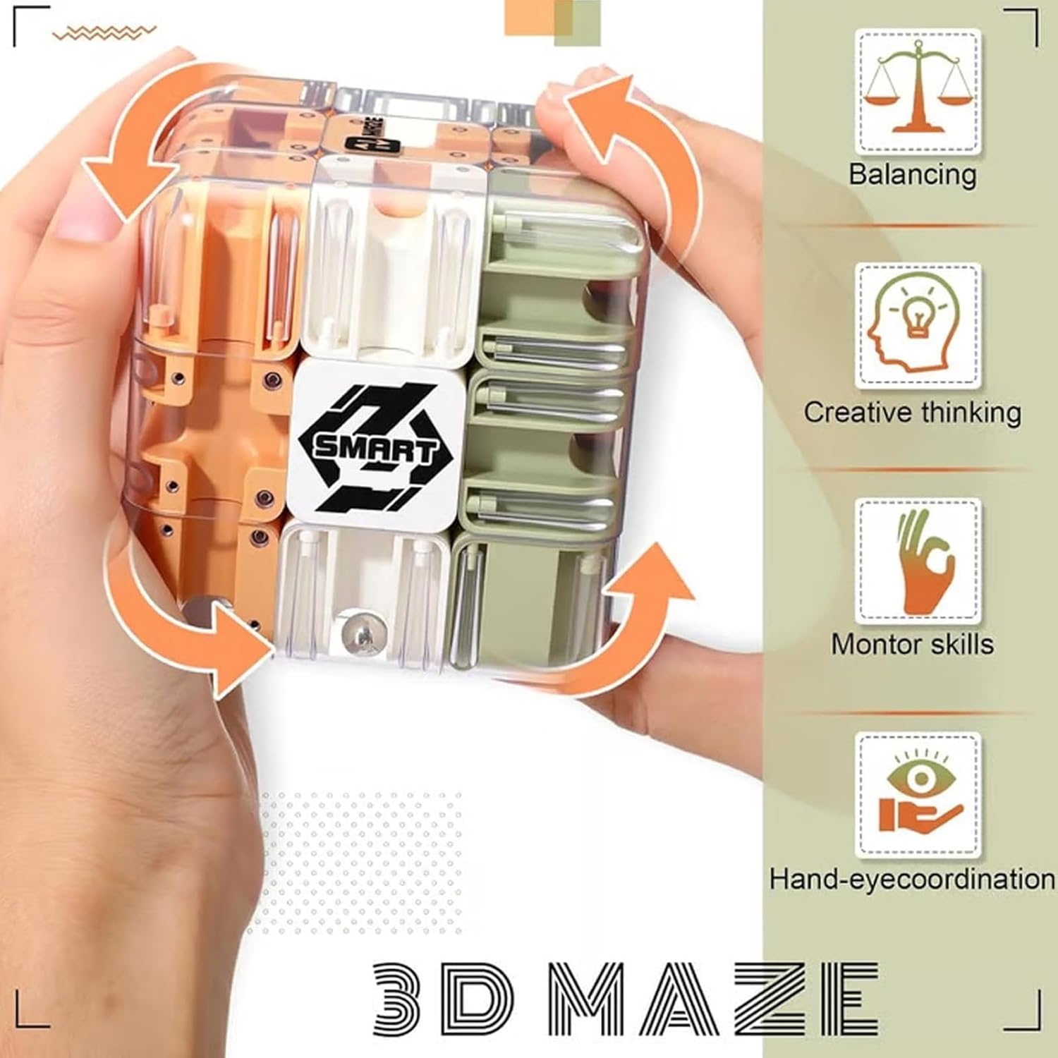 Affascinante puzzle 3D labirinto - Il cubo rotante del labirinto sfida la mente e migliora la concentrazione, la pazienza e le capacità di risoluzione dei problemi negli adolescenti e negli adulti. DESIGN DUREVOLE E SICURO - Realizzato in plastica atossica di alta qualità, questo cubo leggero è sicuro per tutte le età e perfetto da portare in viaggio, in classe o alla scrivania. Sollievo dallo stress e aiuto alla concentrazione: un'ottima alternativa ai giocattoli irrequieti. Questo puzzle tiene le mani occupate, riduce lo stress e migliora la concentrazione durante il lavoro o lo studio. Divertimento per tutti i livelli di abilità: il cubo labirinto 3D è facile da imparare ma difficile da padroneggiare. Fornisce ore di intrattenimento, allena la logica e promuove la resistenza. REGALO PERFETTO - Un'idea regalo educativa e unica per gli amanti dei puzzle di tutte le età - ideale per compleanni, vacanze, feste o come gioco da scrivania.