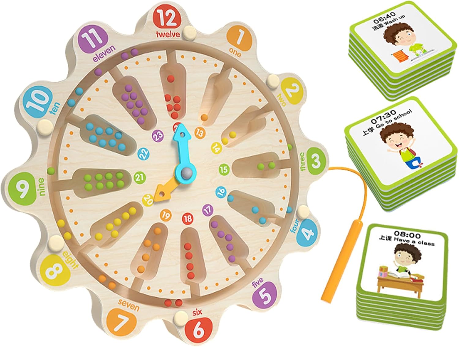 Strumento di insegnamento flessibile: versatile in diversi ambienti di apprendimento, combina design ottimizzato per lo spazio con pianificazione giornaliera strutturata e si adatta a diversi concetti pedagogici Design adatto ai bambini: le impugnature ergonomiche e il colore a contrasto promuovono le capacità motorie. La struttura leggera permette un facile trasporto e conservazione Allenatore di gestione del tempo: sviluppa competenze di autoregolamentazione con la pianificazione virtuale - aiuta a creare pianificazioni giornaliere, coordinamento delle attività e organizzazione giornaliera efficace Apprendimento del tempo codificato a colori: promuove il senso del tempo attraverso un gioco magnetico interattivo con giochi di mappatura in base ai colori e ai modelli di tempo contrastanti. Ideale per l'apprendimento sensoriale e lo sviluppo delle capacità motorie Crea il tempo della famiglia: intensifica i legami familiari risolvendo insieme i puzzle del labirinto con compiti temporali integrati che sviluppano abilità comunicative nel gioco naturale