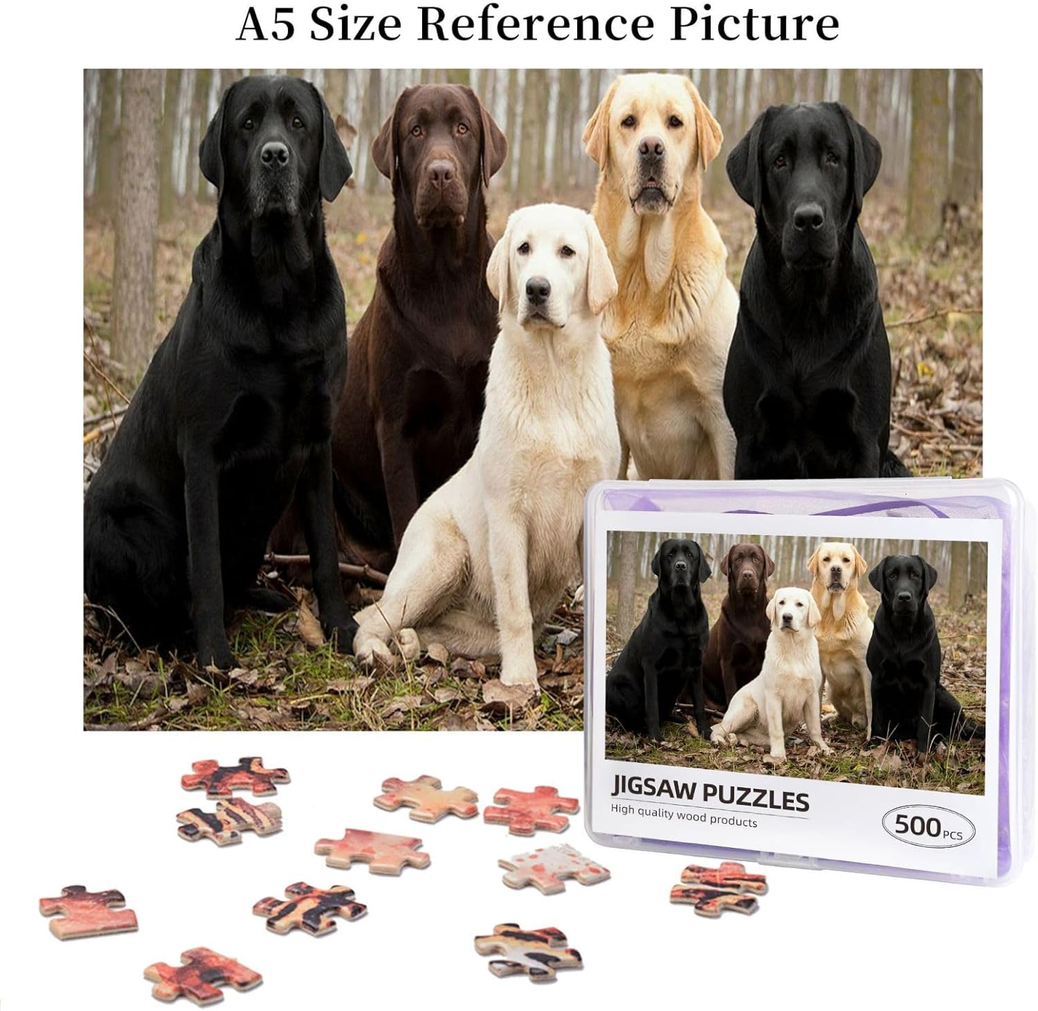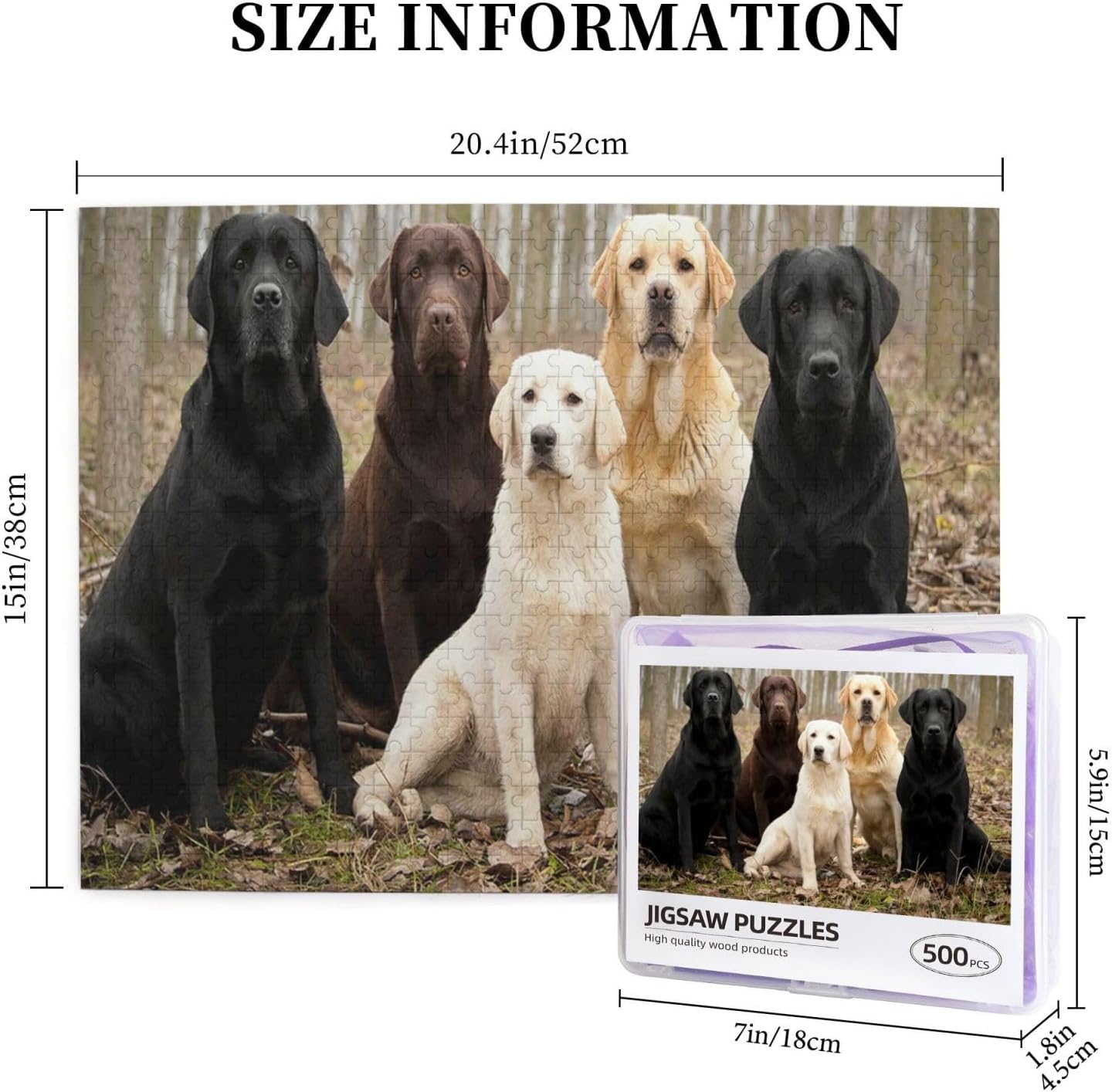 Labrador Retriever Cani Nero Dorato Bianco Marrone, Puzzle da 500 pezzi per adulti - Puzzle in legno per adulti e anziani