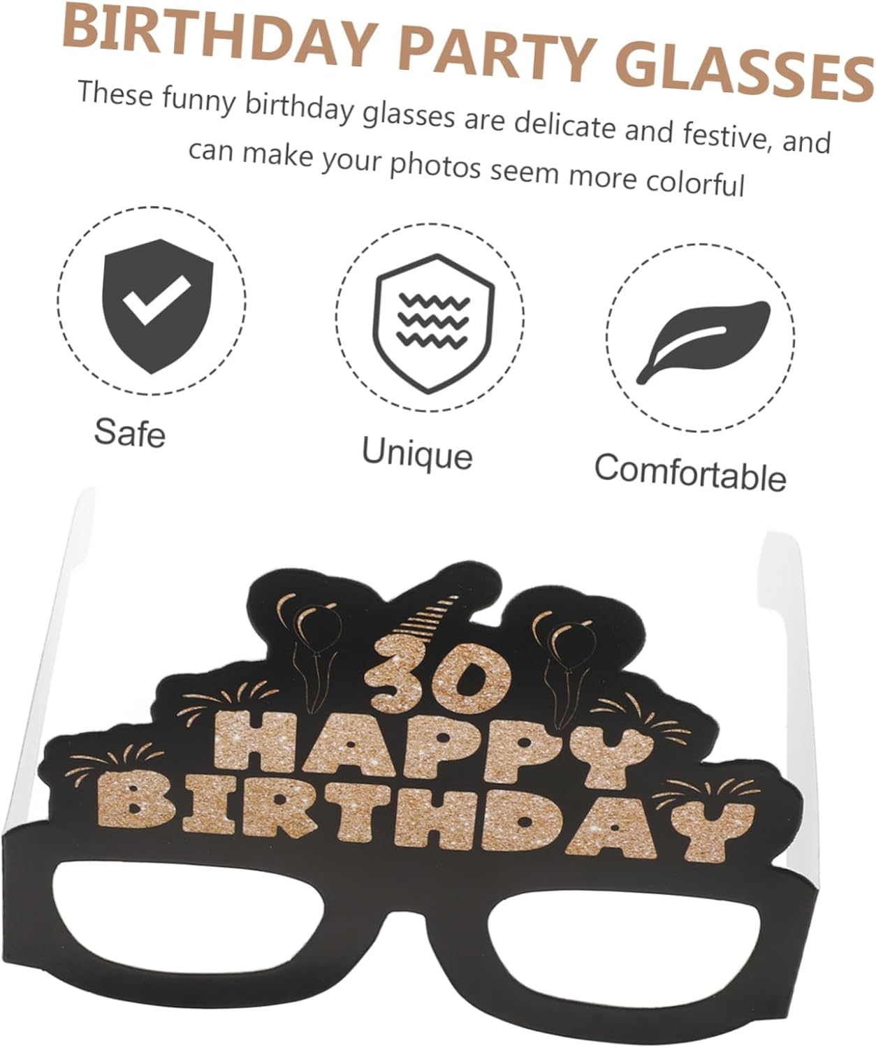 Bicchieri di carta: portatili da portare con sé, le persone possono indossarli in sicurezza, per trascorrere feste indimenticabili leggeri, facili da indossare, occhiali di carta per feste di compleanno Decorazione con bicchieri da compleanno: sono regali perfetti per i tuoi amici per il loro compleanno e possono lasciare loro ricordi indimenticabili della festa di compleanno, oggetti di scena per feste Occhiali da sole di carta: dimensioni compatte e peso leggero, portatili da indossare e riporre, molto comodi, occhiali di carta Occhiali per feste di compleanno: accessori per cabine fotografiche per feste di compleanno, adatti a te, alla tua famiglia e ai tuoi amici per divertirti e festeggiare il compleanno, occhiali da compleanno Accessori per foto di feste: ottimi regali per la tua famiglia o i tuoi amici, condividi una gioia e impressionali ancora di più, scatta foto più distintive, occhiali da festa di carnevale