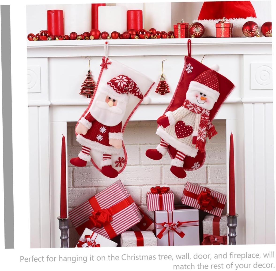 Il design a fumetti e i dettagli intricati rendono questa borsa un'aggiunta unica e accattivante tuo arredamento natalizio. Una perfetta decorazione natalizia da appendere, può essere facilmente appesa all'albero di Natale e caminetto. Regali di Natale e caramelle possono essere messi in questo calzino e inviati ad un adorabile piccolo , a loro piacerà. La calza di Natale è una decorazione perfetta per Natale, a casa, ristorante, club, bar. La borsa è abbastanza da contenere più regali e caramelle, rendendola una decorazione versatile.