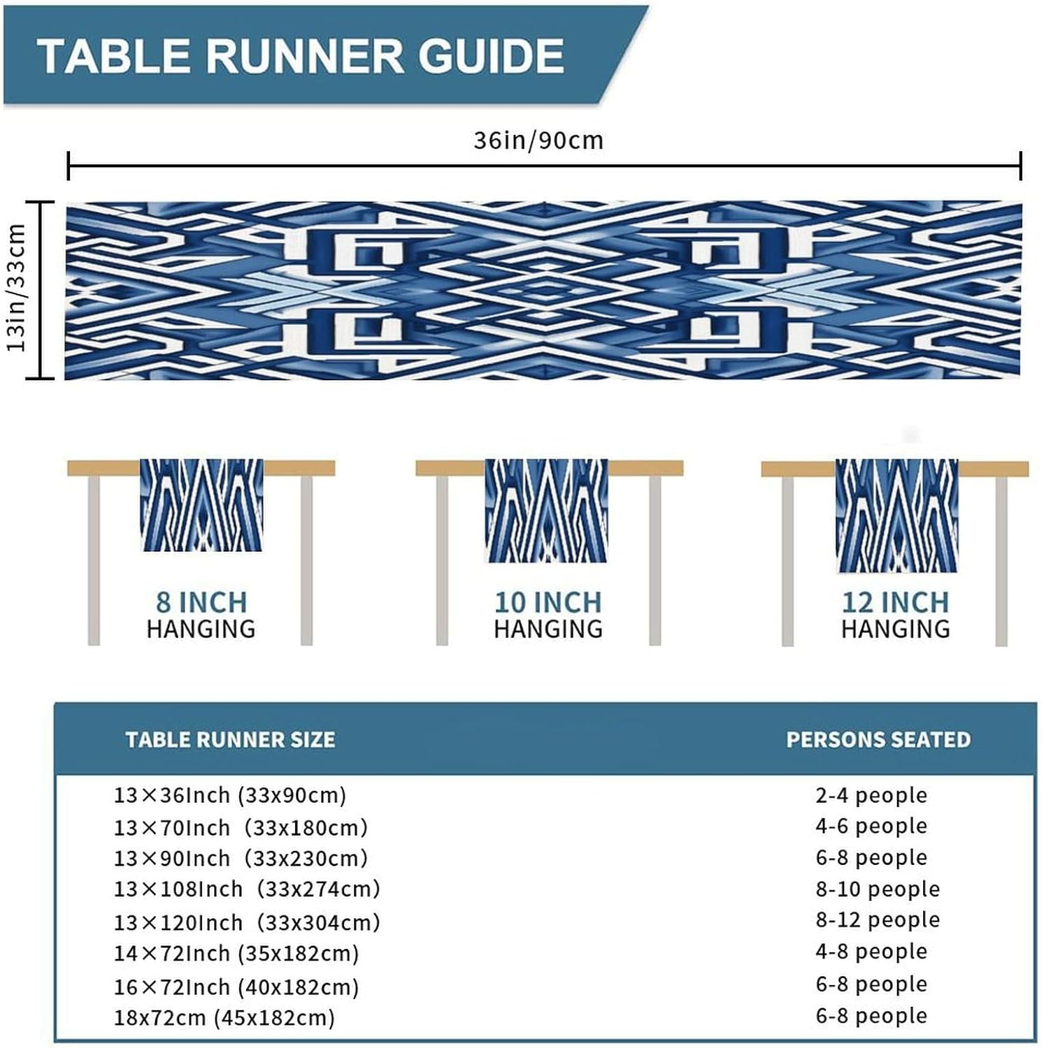 Lacefield Runner da tavolo geometrico blu con motivo a griglia, 13x36 pollici, tappetino decorativo per cucina, sala da pranzo, feste, riunioni di famiglia, decorazioni per runner da tavola