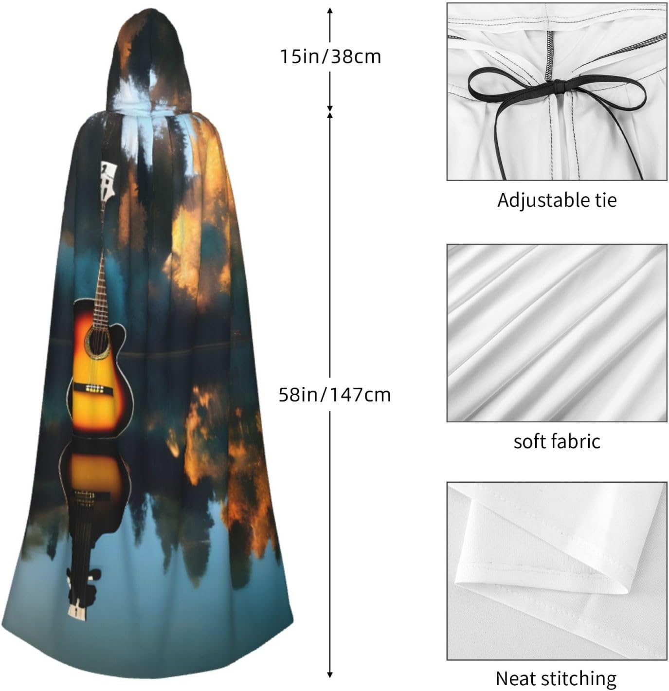 Il mantello con cappuccio per Halloween è realizzato con tessuto in poliestere morbido anche sulla pelle, prevenendo qualsiasi irritazione. Il mantello presenta un ampio cappuccio e uno stile annodato senza cerniere per un design sofisticato ed elegante. Con la sua dimensione universale, offre una copertura completa, adatta a tutti, assicurandoti di distinguerti tra la folla. Questo mantello con stampa Lake Guitar Reflections non è solo per Halloween; è abbastanza versatile per cosplay, spettacoli teatrali, balli in maschera, feste a tema e molto altro ancora.