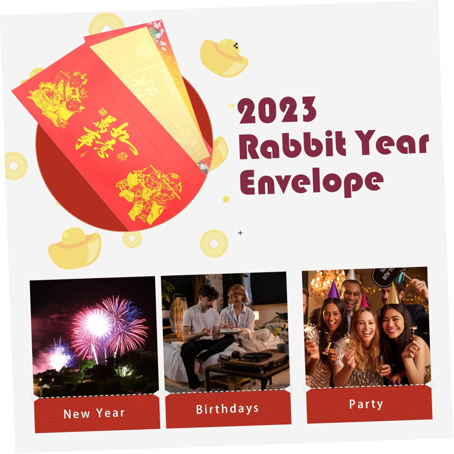 Busta coniglio: ampia di applicazioni, sono adatte per il capodanno cinese, o compleanni, fidanzamenti e altre feste, banconote cinesi in lamina d'oro Pacchetto rosso per il capodanno: i pacchetti rossi possono essere applicati a una varietà di scene, come il capodanno cinese, ecc. nota in lamina d'oro con coniglio Nota in lamina dell'anno del coniglio 2023: ogni busta rossa augura ai destinatari gioia, prosperità, benedizioni, fortuna, che possono portare benedizioni alle tue famiglie e ai tuoi amici, pacchetti bunny red Tasca rossa dell'anno del coniglietto: una busta rossa per il capodanno lunare cinese, che augura felicità, salute, buon auspicio e prosperità, celebrazione della vita Pacchetto rosso: le buste rosse sono realizzate in carta con superfici lisce, robuste e non facili da rompere, ti fanno sentire a tuo agio e utile per l'uso, banconote in lamina d'oro