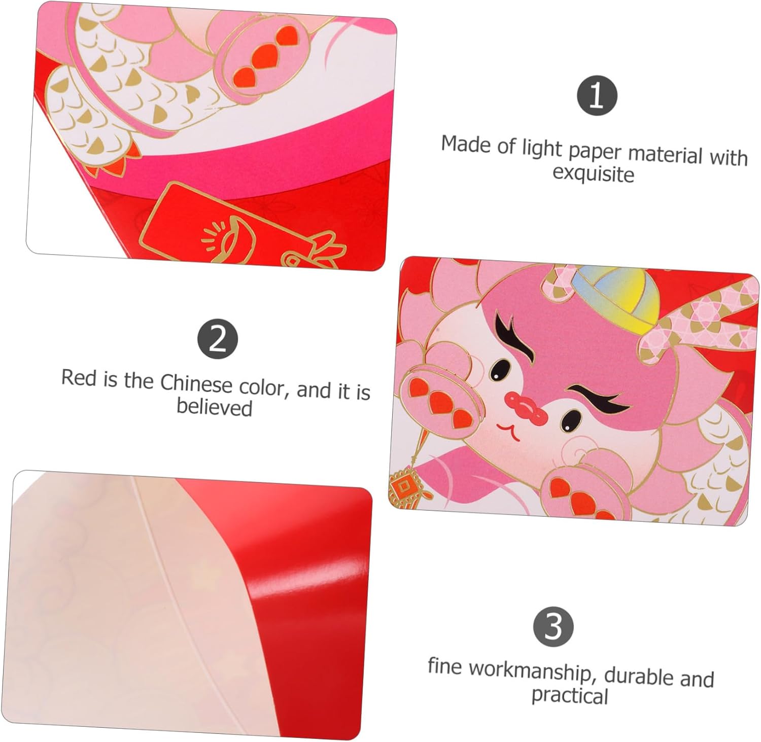 Buste rosse cinesi: realizzate in carta, queste buste rosse sono robuste e non facili da rompere, con superficie liscia, buste rosse Pacchetti rossi: la busta rossa del capodanno cinese è realizzata in materiale cartaceo, per un uso prolungato, busta rossa Buste rosse per il capodanno lunare 2024: puoi riempirle di denaro come durante il capodanno cinese, pacchetti rossi decorativi e creativi, buste per il capodanno cinese 2024 Busta portafortuna 2024: l'apertura è sigillata inserendo una scanalatura, quindi non c'è bisogno di usare nastro adesivo o colla per sigillare ed è facile da aprire e chiudere, buste rosse cinesi Sacchetto di soldi rosso della fortuna: la che riceve la busta rossa stampata con motivo in stile cinese sentirà la tua gentilezza e il tuo calore, pacchetto rosso dei cartoni animati