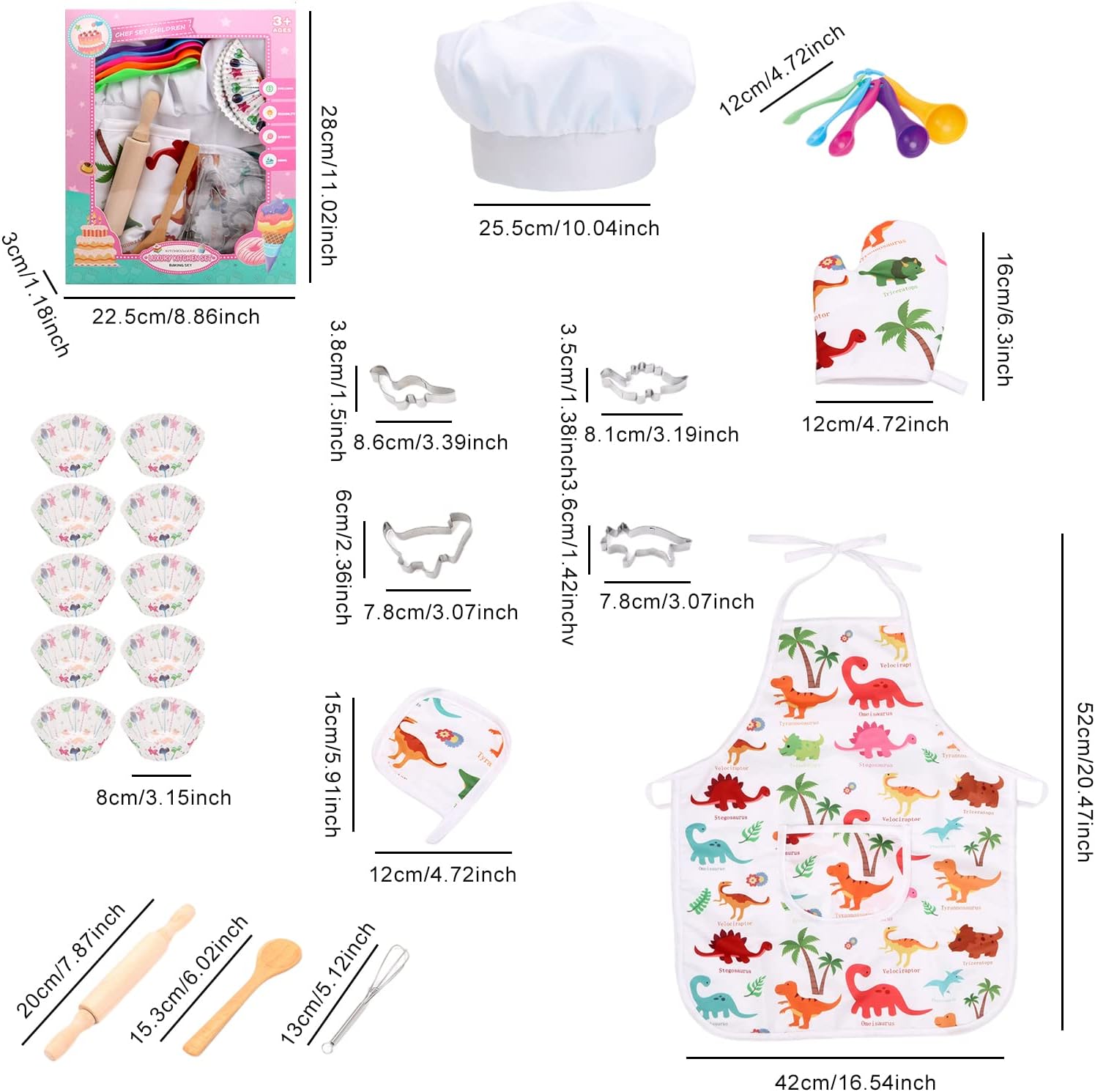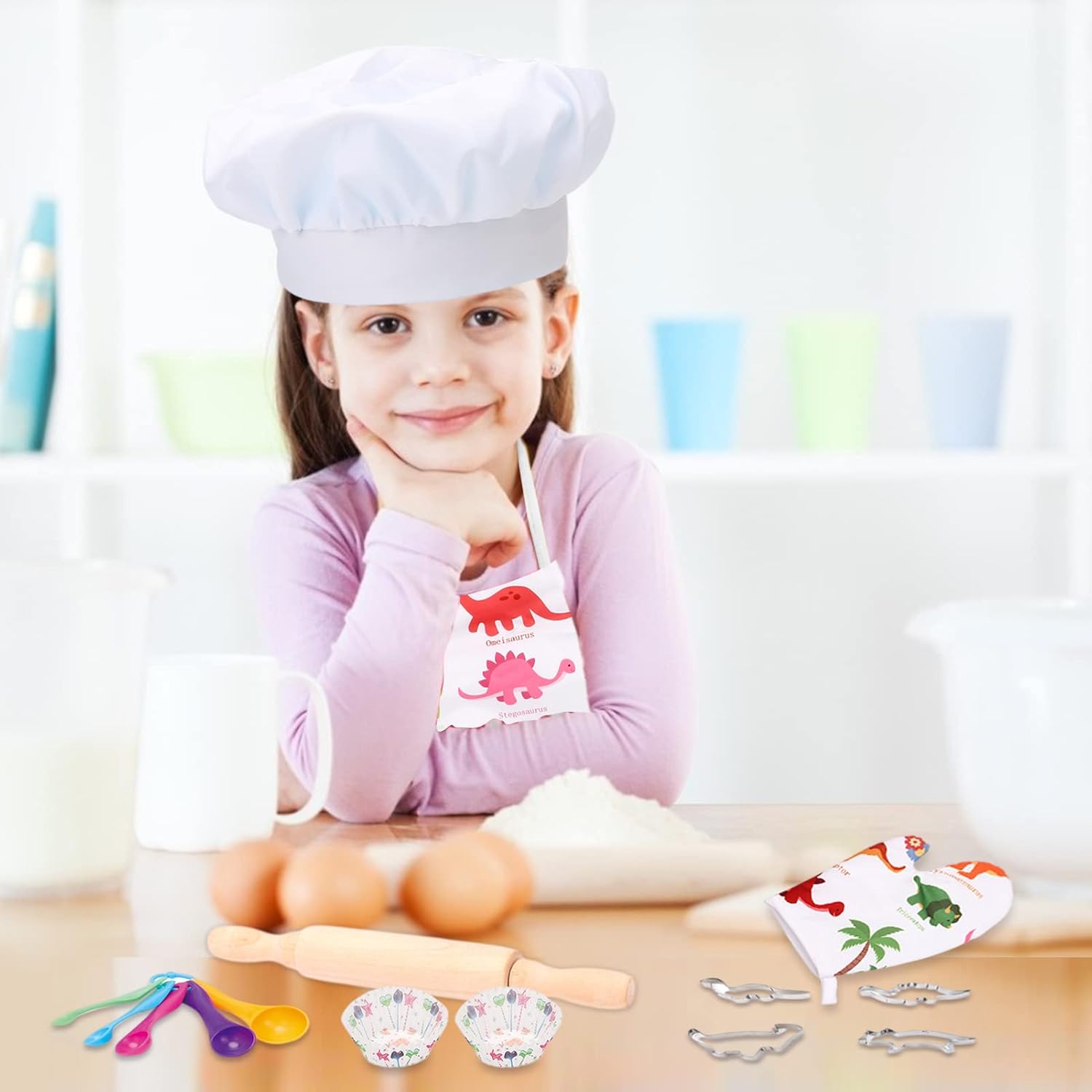 Migliora la creatività: lascia che l'immaginazione di tuo figlio si scateni con ore di gioco di simulazione nel suo set da cucina, ideale per coloro che sviluppano l'amore per la pasticceria e la cucina. Il divertente set di giocattoli educativi da cucina incoraggia la creatività e l'immaginazione e migliora le loro capacità di manipolazione. Materiali di alta qualità: il nostro set di costumi da gioco di ruolo per bambini è realizzato con materiali sicuri e di alta qualità, inodore e rispettosi dell'ambiente, facili da pulire e garantisce loro un gioco sicuro e felice ed evita le preoccupazioni della famiglia. Facile per te: il grembiule da cucina azzurro è dotato di una cinghia intorno al collo e alla vita per adattarsi anche a bambini e ragazzi. Il cappello da cuoco è bianco ed è dotato di elastico regolabile per adattarsi perfettamente alla testa del bambino. Sarai ossessionato dal taglio e dalla cucina dopo aver vestito l'intero chef. Il miglior set regalo: utensili da cucina, un bellissimo grembiule da cucina per bambini, un cappello da chef e 26 giocattoli da cucina per giochi di finzione. Un ottimo set ad un prezzo conveniente. Il set da cucina da gioco è perfetto per vacanze, feste di compleanno o regali per festival. ACCESSORI DA CUCINA COMPLETI: 26 pezzi totali includono grembiuli, cappelli da chef, guanti da cucina, guanti, mattarello, cucchiai, fruste, utensili da forno e altri utensili da cucina, tutto il necessario per cucinare.