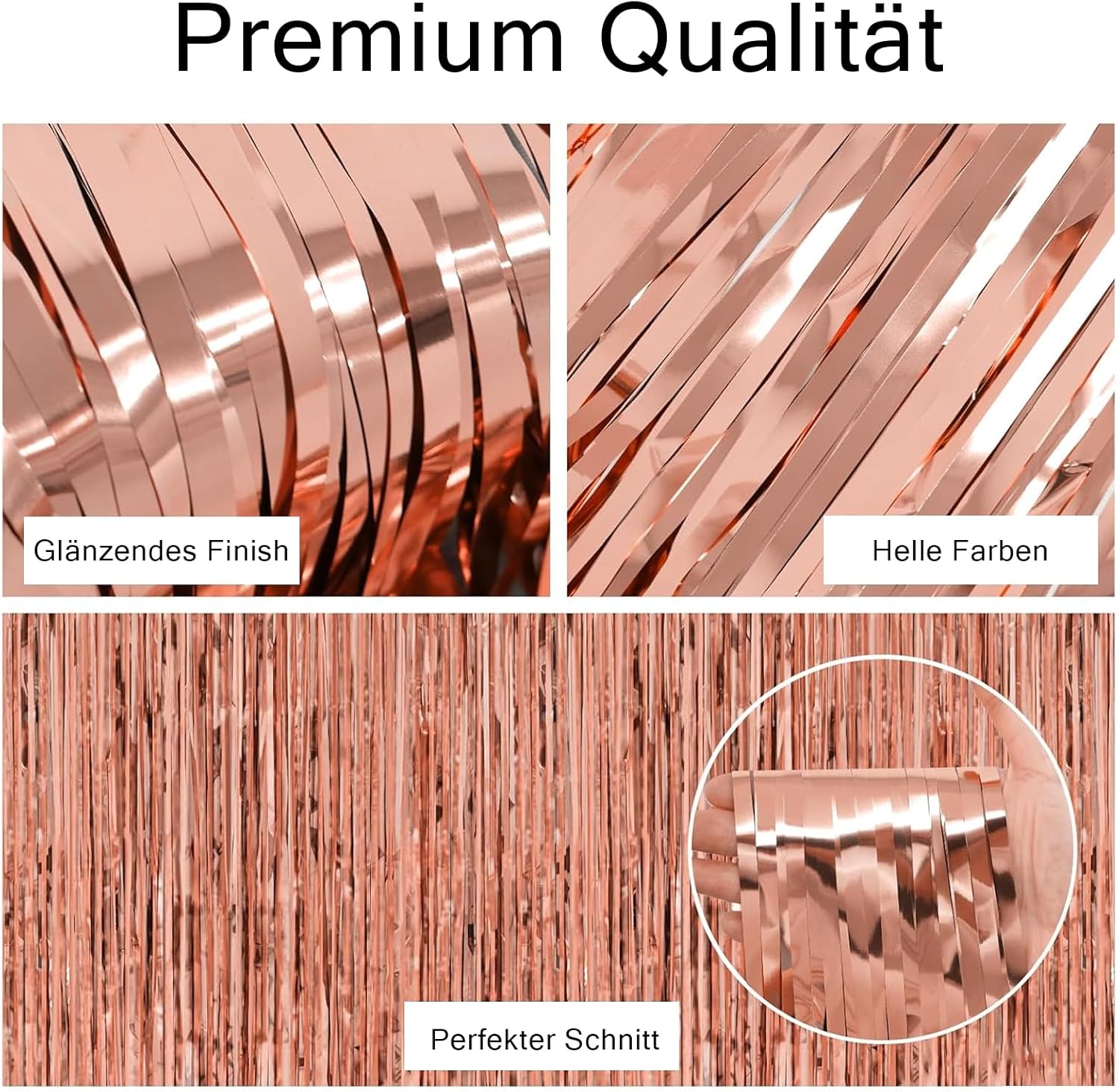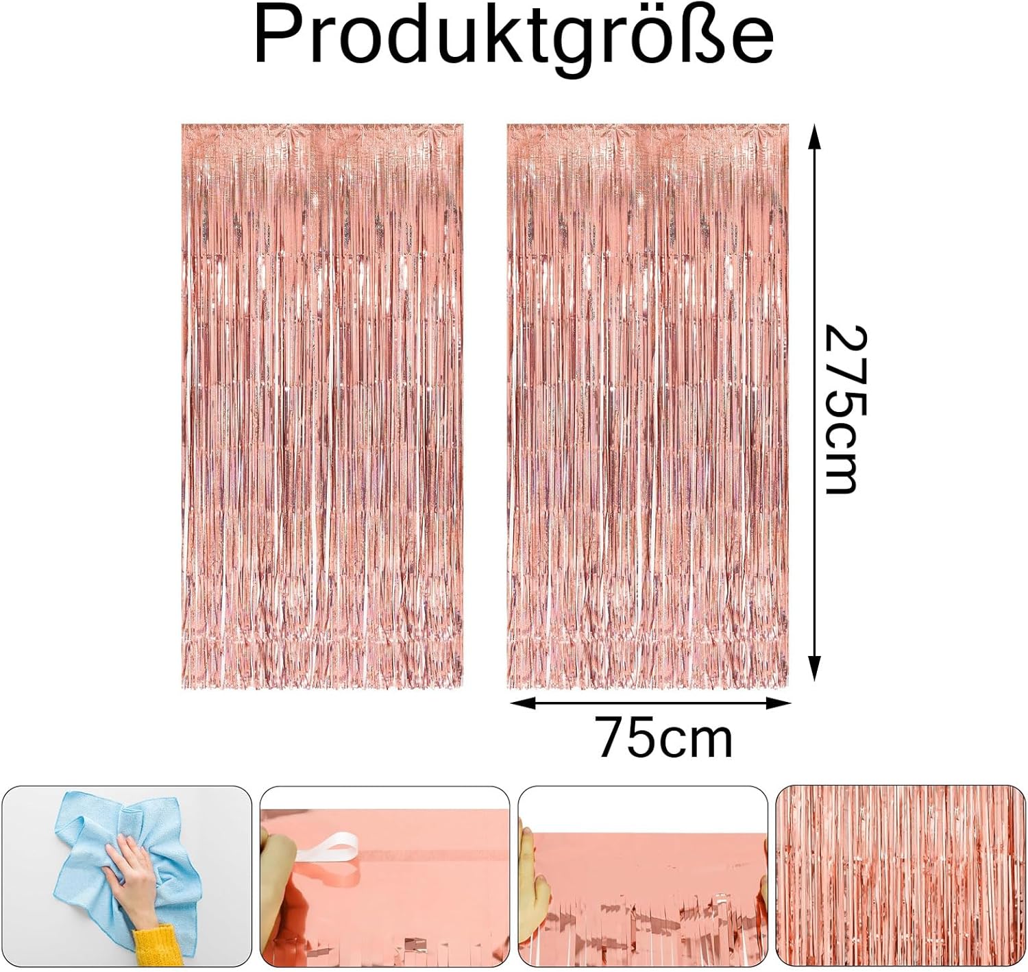 2 tende a lametta. Riceverete 2 tende in oro rosa. Ogni tenda con glitter misura circa 275 cm x 75 cm, la tenda è abbastanza lunga per decorare la vostra festa Decorazione per feste: la nostra tenda con glitter con superficie estremamente luminosa e lucida, molto adatta da appendere alla parete per creare uno sfondo scintillante e illuminare facilmente la tua festa Decorazione per compleanno: queste decorazioni per il compleanno sono realizzate in materiale PVC, lisce e lucide, le decorazioni per feste sono riutilizzabili (è necessario applicare il nastro adesivo da soli quando lo si utilizza) Decorazione oro rosa: le tende glitterate per feste hanno un nastro biadesivo dietro di loro, strappate il retro del nastro adesivo e incollate la tenda nel punto desiderato, facile e comoda da installare, decorate la scena ideale per feste in pochissimo tempo, i vostri amici saranno entusiasti Sfondo con frange in pellicola: la tenda a tinsel è perfetta per feste di compleanno, matrimoni, baby shower, Natale, feste di anniversario, discoteca, ecc., per creare uno sfondo perfetto o una decorazione da parete, per aggiungere brillantezza alle vostre feste