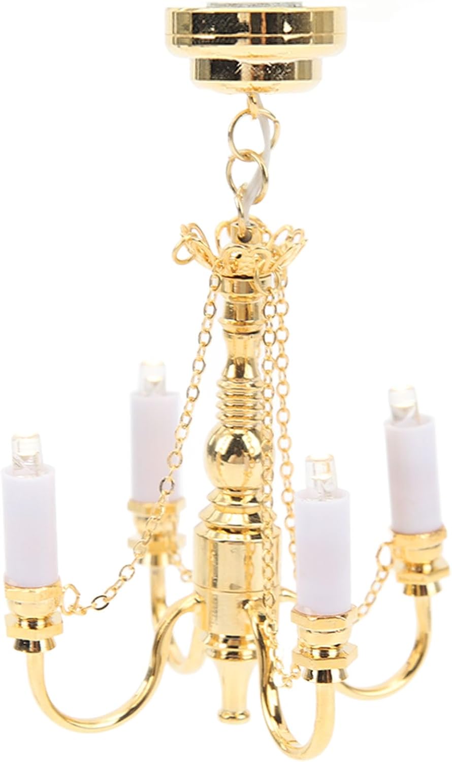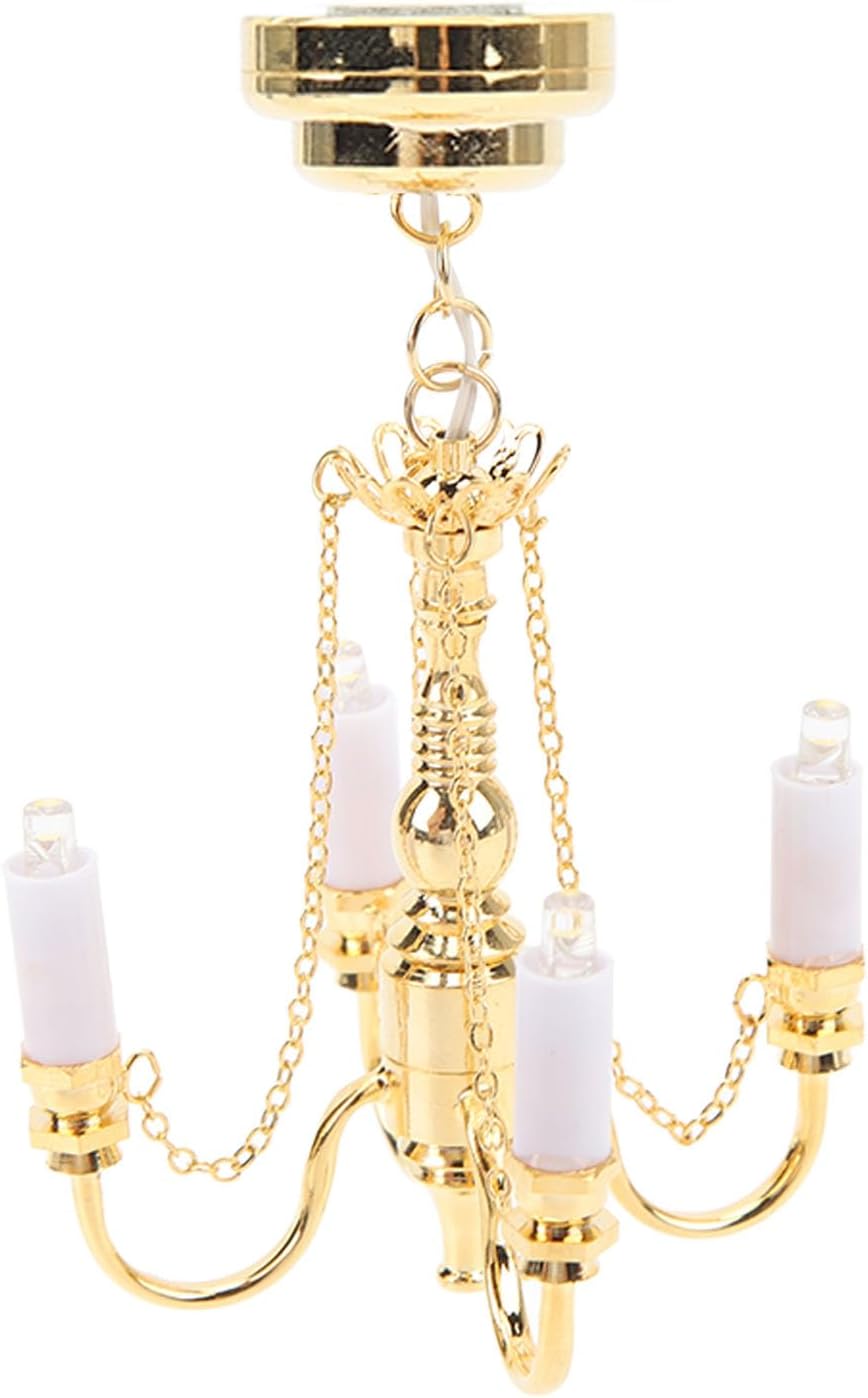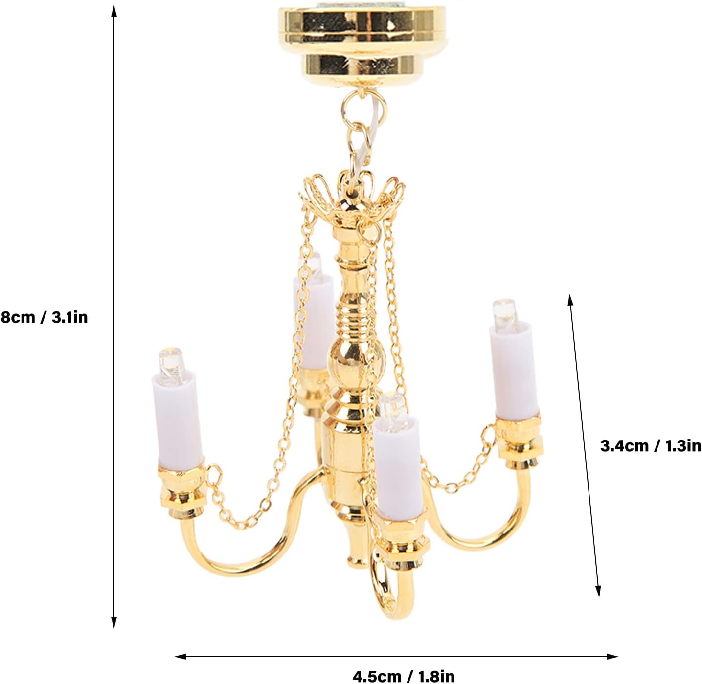 Alimentazione a batteria: plafoniera in miniatura con batteria a bottone integrata da 120 mAh e raffinato design del pulsante di commutazione per un uso a lungo termine. Applicazione: lampadario in miniatura progettato per la decorazione della casa delle bambole in scala 1/12. Mantieni la casa delle bambole asciutta e fresca, evita la luce solare. Ottima fattura: il processo di produzione del lampadario per casa delle bambole è squisito, confortevole al tatto, super delicato, sembra molto strutturato. Scene di applicazione: possono essere utilizzate come soggiorno, camera da letto, sala da pranzo, studio, stanza del cucito e altri luoghi di decorazione della casa delle bambole. Realistico: questa plafoniera per casa delle bambole è molto realistica, design a 4 teste, forma adorabile, può rendere la tua casa delle bambole vintage e squisita.