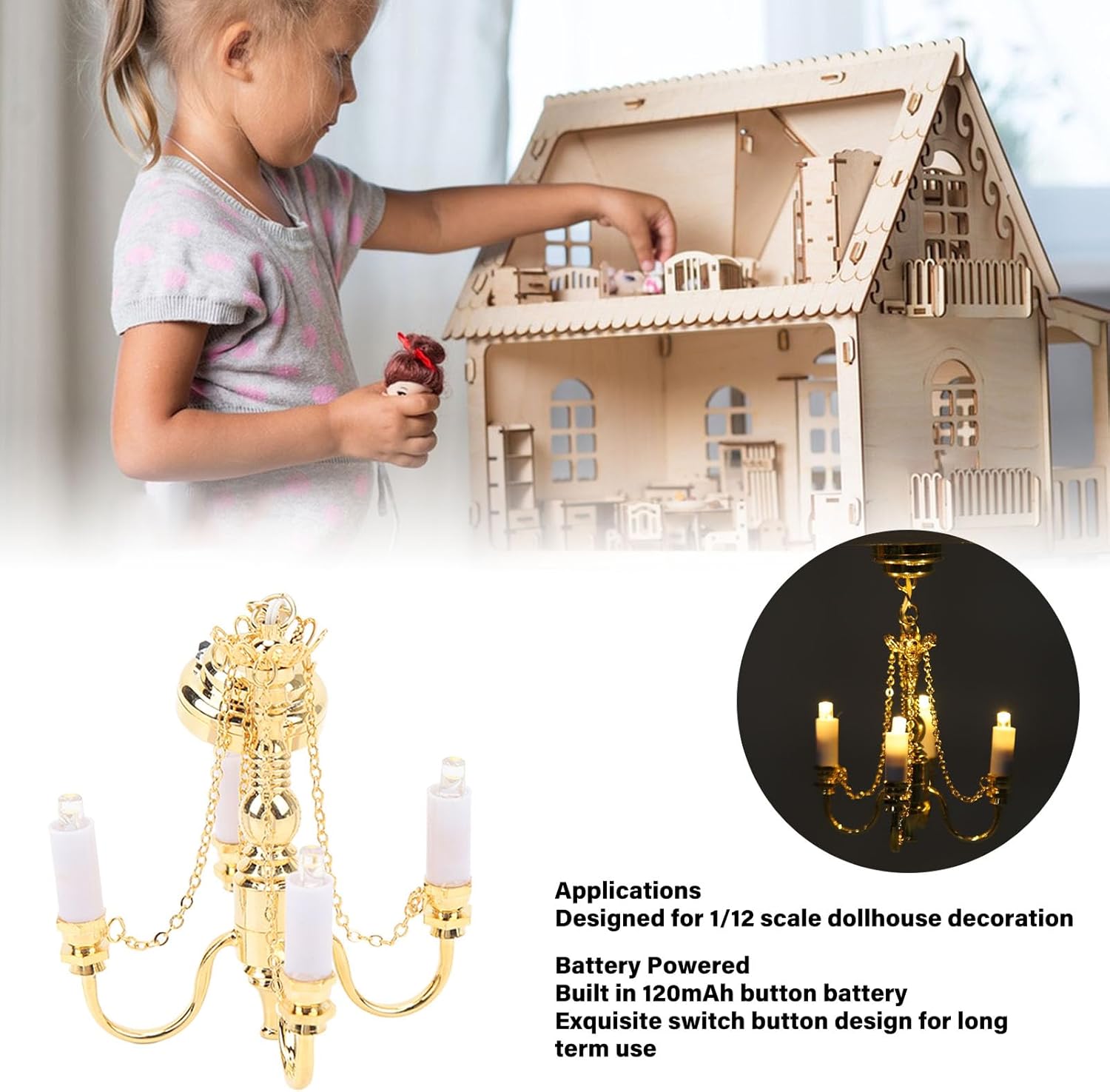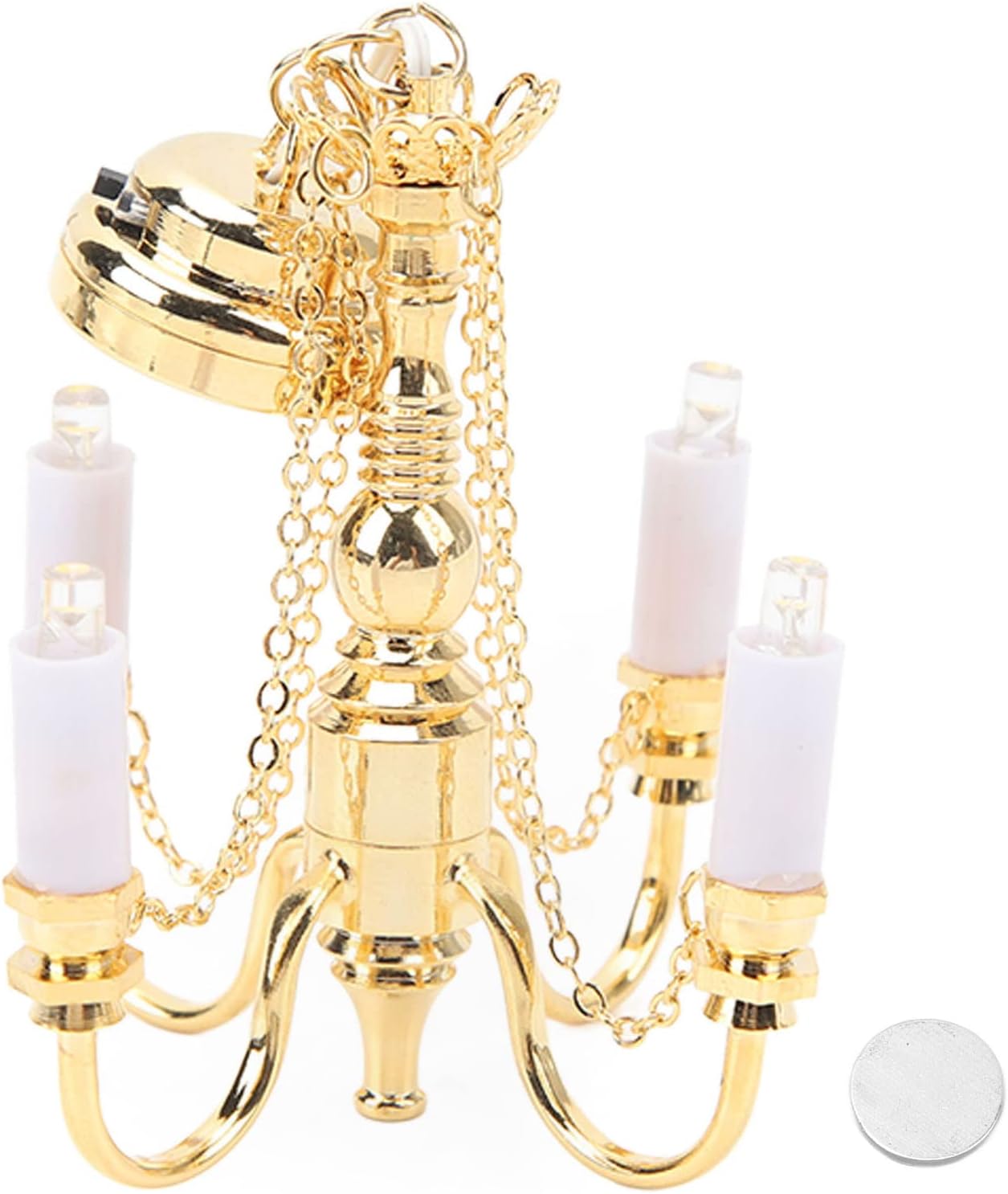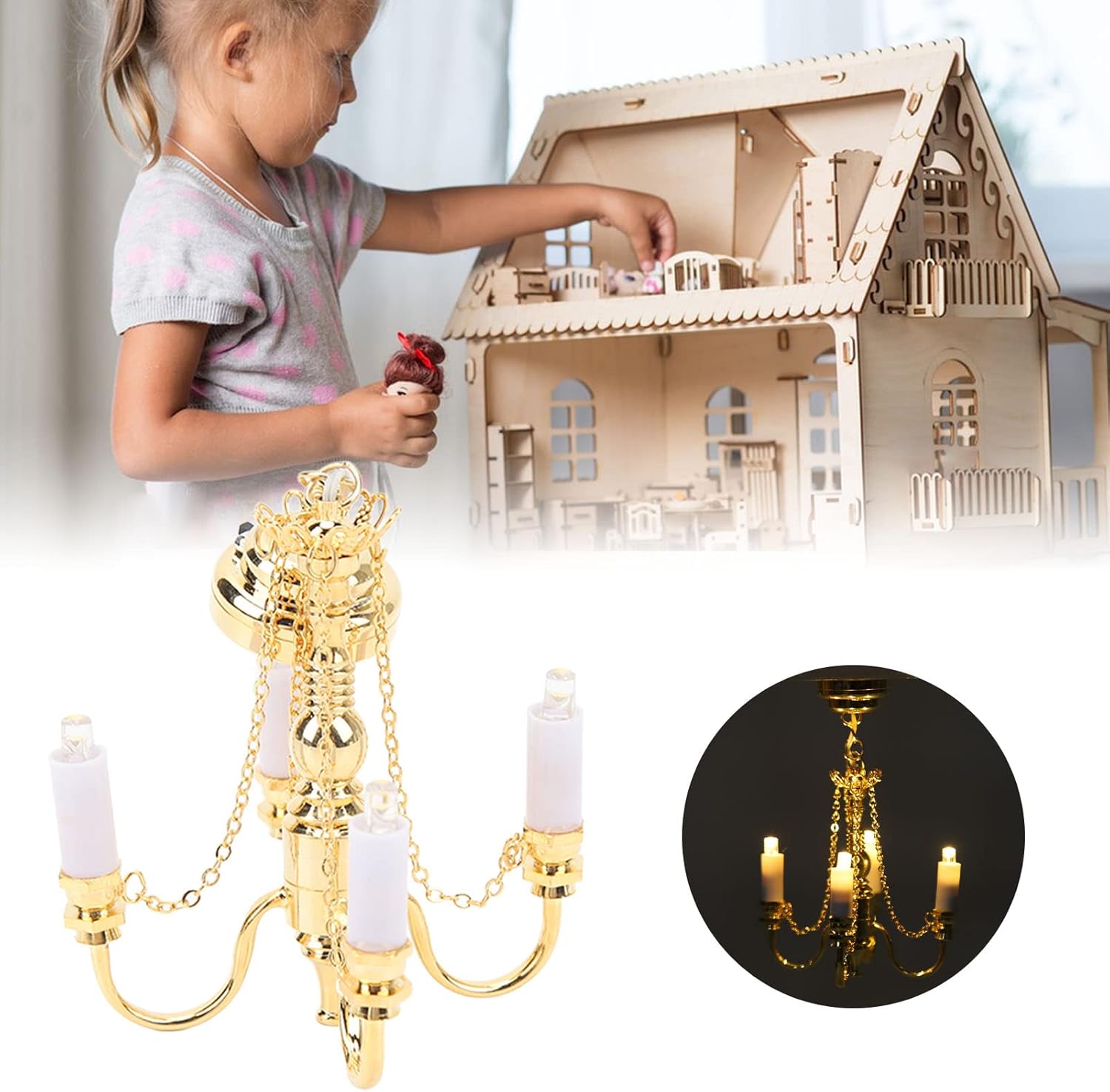Alimentazione a batteria: plafoniera in miniatura con batteria a bottone integrata da 120 mAh e raffinato design del pulsante di commutazione per un uso a lungo termine. Applicazione: lampadario in miniatura progettato per la decorazione della casa delle bambole in scala 1/12. Mantieni la casa delle bambole asciutta e fresca, evita la luce solare. Ottima fattura: il processo di produzione del lampadario per casa delle bambole è squisito, confortevole al tatto, super delicato, sembra molto strutturato. Scene di applicazione: possono essere utilizzate come soggiorno, camera da letto, sala da pranzo, studio, stanza del cucito e altri luoghi di decorazione della casa delle bambole. Realistico: questa plafoniera per casa delle bambole è molto realistica, design a 4 teste, forma adorabile, può rendere la tua casa delle bambole vintage e squisita.