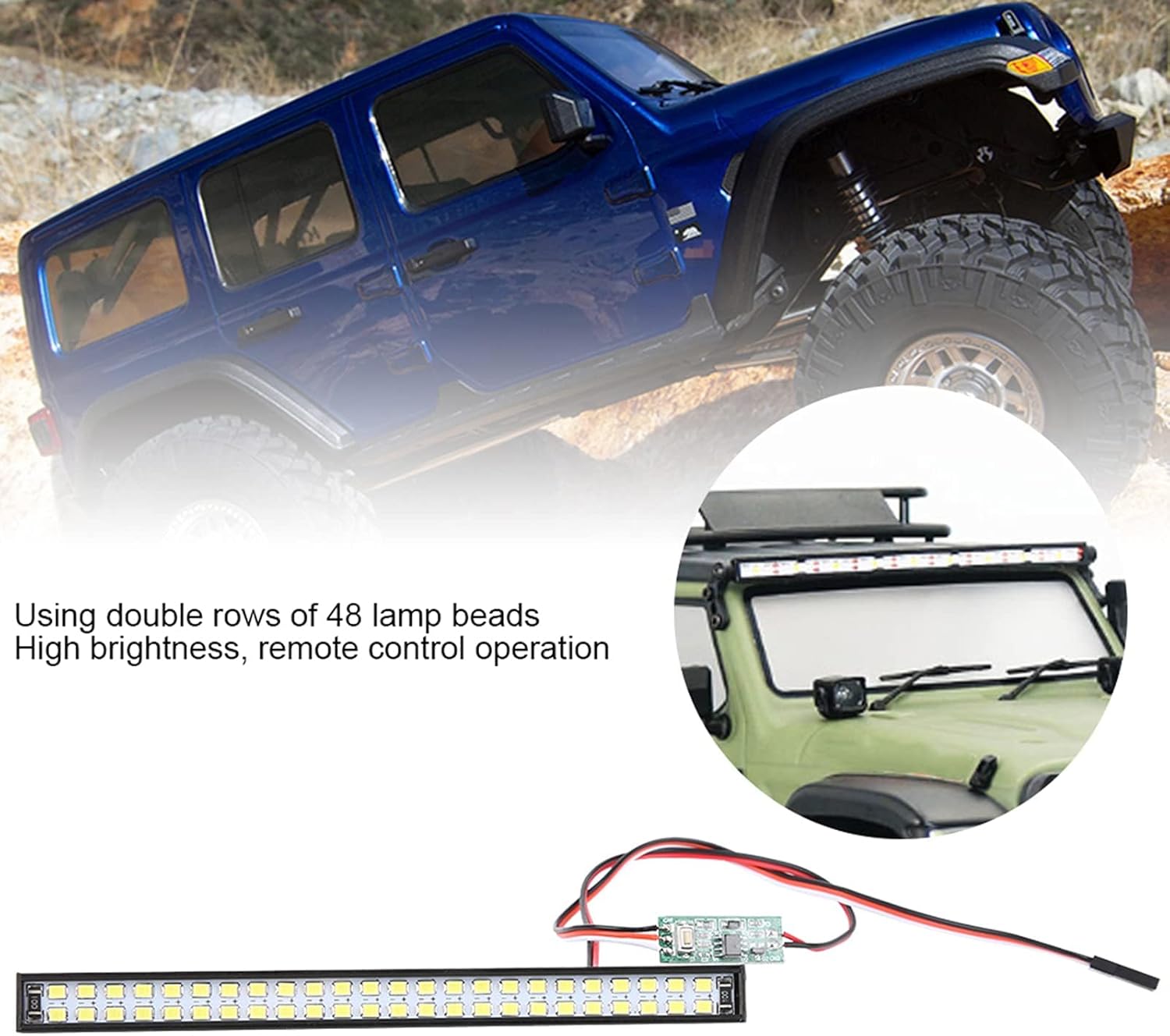 ILLUMINAZIONE BRILLANTE: la barra luminosa a LED universale presenta una doppia fila di 48 perle luminose, alta luminosità e funzionamento tramite telecomando, illuminando il tuo viaggio, illuminando facilmente tutti gli ostacoli e amplificando la tua simulazione e l'illuminazione decorativa. TRE MODALITÀ: la luce decorativa telecomandata ha tre modalità regolabili, luce lunga/strobo/respirazione, offrendo funzionalità complete per la navigazione attraverso impostazioni di illuminazione appropriate e misure di controllo migliorate. FACILE DA INSTALLARE: l'illuminazione per veicoli RC è un eccellente accessorio decorativo, facile da installare e con impostazioni semplici e veloci. È un accessorio per la modifica della tua auto RC. Migliora l'autenticità dell'auto radiocomandata, rendendola più accattivante e attraente. APPLICAZIONI MULTIFUNZIONALI: gli accessori per strisce luminose a LED sono utilizzati principalmente per uso esterno o per l'illuminazione decorativa di simulazioni d'avventura e sono comunemente utilizzati per i tracciati RC. Sono adatti a diverse marche di veicoli RC e hanno una forte praticità. MATERIALE: la lampada da tetto RC è realizzata in eccellenti materiali metallici e plastici, con una struttura compatta e robusta, eccellente durata e affidabilità, resistenza all'usura, elevata resistenza e non si deforma o rompe facilmente, garantendo un utilizzo a lungo termine.