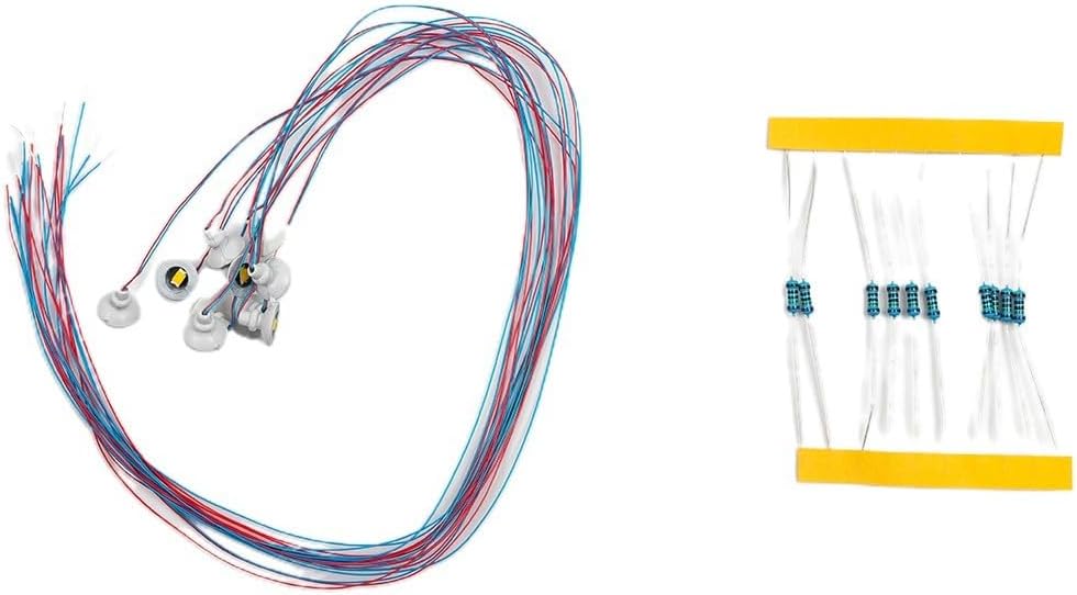 Completo di luci verniciate: questi lampioni sono dotati di fili e LED, che consentono di accenderli facilmente. Colore della luce bianca calda: il colore della luce predefinito di questi lampioni è bianco caldo, creando un'atmosfera accogliente e invitante. Tensione di funzionamento sicura: con una tensione di funzionamento di 3 V CC, queste lampade possono essere utilizzate in modo sicuro. È importante non superare i 3 V a meno che una resistenza non sia cablata con ciascuna luce. Efficienza energetica: ogni luce funziona a bassa corrente di 20 mA, fornendo un'illuminazione di lunga durata riducendo al minimo il consumo energetico. Perfetti per layout in scala HO: con un diametro del disco di 6 mm, questi lampioni sono perfettamente adatti per layout in scala HO. Aggiungono realismo e migliorano l'attrattiva visiva del paesaggio del tuo modello. La confezione include i componenti necessari: ogni confezione include 10 luci verniciate complete e 10 resistori da 620 ohm da 1/4 W, che hai tutto il necessario per una facile installazione.