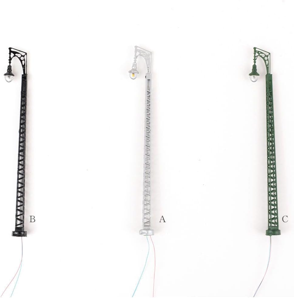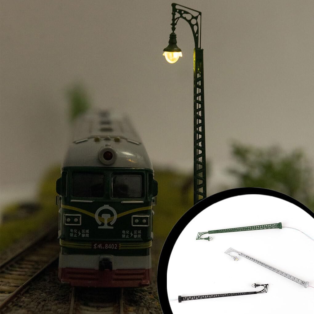 Materiale durevole: il lampione ferroviario in miniatura è realizzato in ABS e metallo con una sensazione di prima classe. Design speciale: design del prodotto semplice e generoso. Il modello di lampione ha funzioni pratiche Funzione utile: modello di parco, giardino, strade, piattaforma e modellismo ferroviario, rendendo la scena più realistica Pregevole fattura: pregevole fattura, dopo una serie di processi di molatura, angoli smussati, non ferire le mani Strumento utile: il modello di lampione è un'ottima decorazione micro paesaggistica per il tuo modello architettonico di tavolo di sabbia