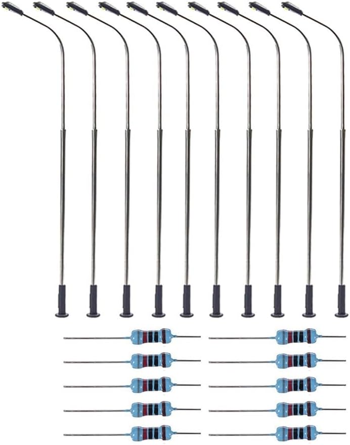 【Lampioni stradali a LED cablati】 Questi 10 lampioni stradali in modello di treno sono realizzati in metallo con luci a LED cablate, fornendo un tocco realistico e illuminato ai tuoi modellini di treni e al layout dell'edificio. 【Adatto per scala O】 Con una scala di riferimento di 1:50, questi lampioni sono progettati specificamente per i layout ferroviari in scala O, garantendo un adattamento perfetto per le tue scene ferroviarie. 【Tensione operativa regolabile】 I lampioni possono essere utilizzati con un intervallo da 3 V a 12 V, consentendo di regolare la luminosità e creare gli effetti di luce desiderati. 【Materiale in rame】 Questi lampioni in rame sono robusti, garantiscono prestazioni di lunga durata e resistenza all'usura. 【Installazione semplice】 Ogni confezione contiene 10 lampioni stradali modello treno e 10 resistori, rendendo conveniente l'installazione e la configurazione di più luci nel layout.