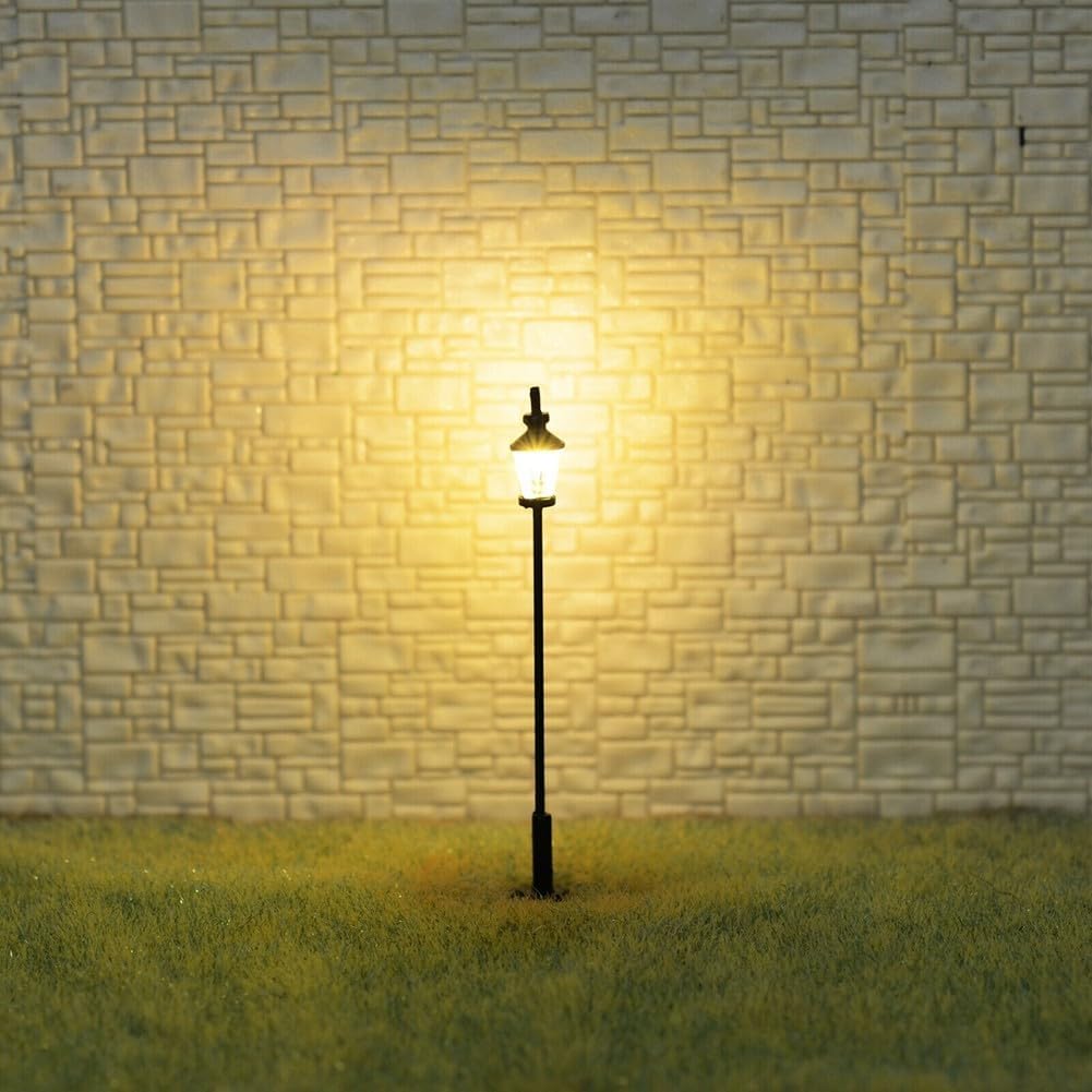 【Lampione stradale a LED antico】Ogni luce funziona con 3 V (solo CC) con una corrente di 20 mA. Viene fornito con resistori compatibili per l'uso a 12V o 16V. La dimensione del lampione può essere verificata utilizzando le foto fornite. Adatto per scala HO o OO. Completo di cavi e LED, si illumina facilmente. Contenuto della confezione: include 8 luci completamente verniciate e 8 resistori da 620 ohm 1/4 W.
