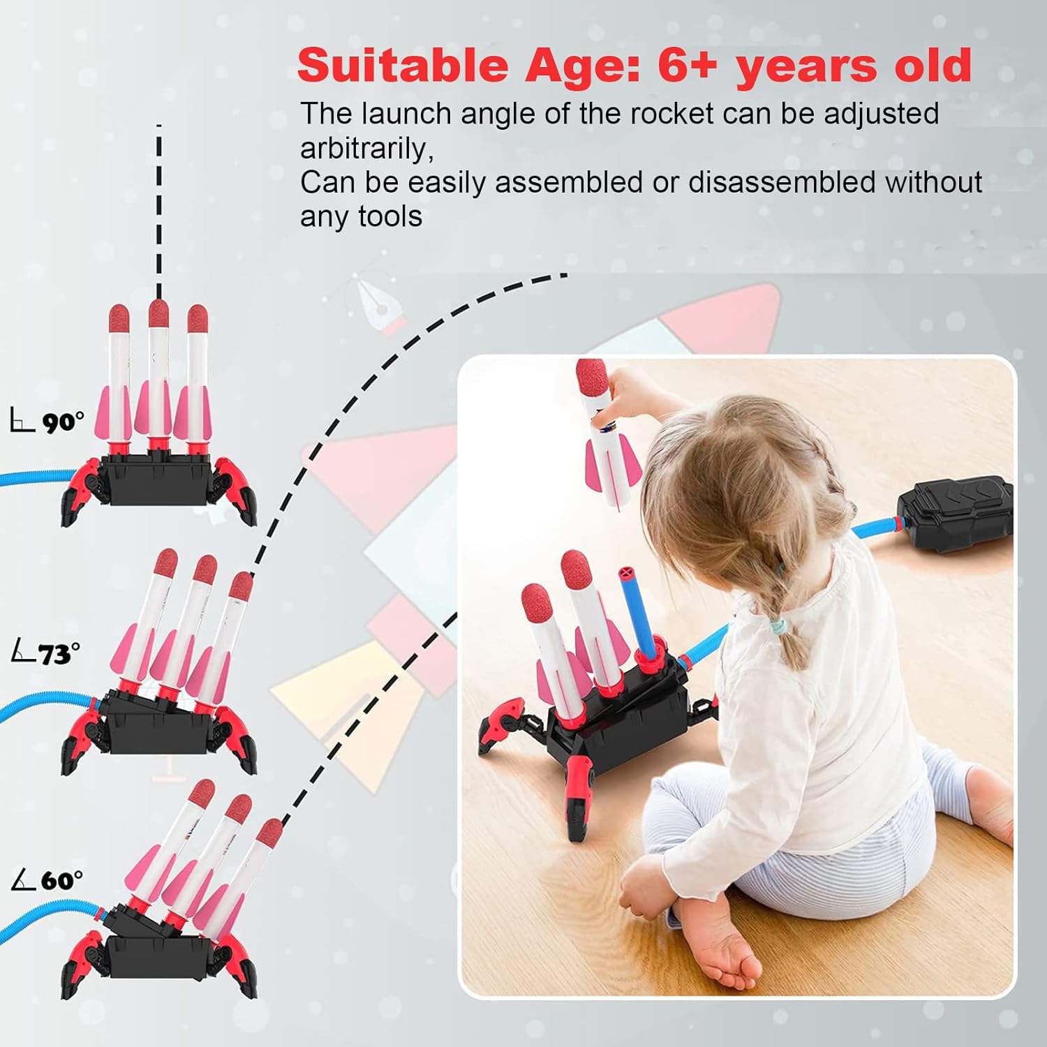 [ANGOLO DI LANCIO REGOLABILE] Prova un divertimento versatile con il nostro lanciarazzi in schiuma impennata all'aperto! L'angolo di lancio regolabile consente ai razzi di volare in varie direzioni, offrendo un intrattenimento senza fine. I bambini possono sperimentare diverse traiettorie di volo, migliorando il loro tempo di gioco all'aperto con avventure emozionanti e imprevedibili. [FACILE MONTAGGIO PER BAMBINI] Progettato per la semplicità, il giocattolo per il lancio del razzo può essere montato e smontato senza sforzo dai bambini senza attrezzi. Il design intuitivo incoraggia l'indipendenza e la creatività, rendendolo un'attività ideale in cui i bambini possono impegnarsi mentre apprendono le abilità di assemblaggio di base e aumentano la loro sicurezza. [STOCCAGGIO COMPATTO E PORTATILE] Goditi la massima comodità con le facili funzionalità di archiviazione del nostro giocattolo a razzo. Una volta terminato il tempo di gioco, le parti smontate possono essere conservate in modo efficiente in piccoli spazi, garantendo che il giocattolo sia facile da trasportare e privo di ingombri. A casa o in viaggio, questo set promette divertimento senza problemi, sempre e ovunque. [Ottimo PER IL GIOCO ALL'APERTO] Ideale per spazi all'aperto come parchi, cortili, giardini e spiagge, questo giocattolo offre ore di gioco energico. I bambini possono correre, saltare e calpestare, lanciando razzi in alto nel cielo. È un ottimo modo per incoraggiare l'attività fisica, fare amicizia e creare ricordi duraturi in vari ambienti emozionanti. [POTENZA DELLA POMPA A PEDALE DI QUALITÀ] Dotato di una robusta pompa a pedale, questo lanciarazzi supporta innumerevoli salti e colpi, fornendo potenza affidabile per lanci impressionanti. Realizzato per la sicurezza e il divertimento di lunga durata, consente giochi vigorosi, offrendo prestazioni costanti che intrattengono e coinvolgono i bambini, assicurando che non rimangano mai a corto di potenza di decollo.