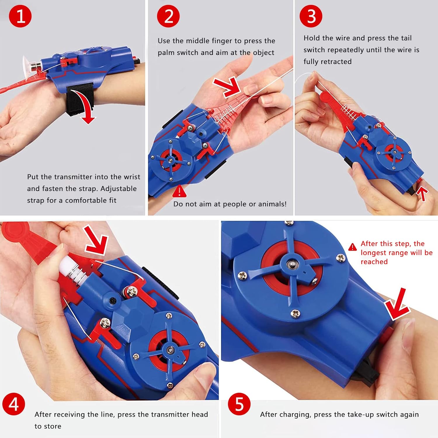 Facile da usare: inserisci il trasmettitore web nel polso e allaccia il cinturino, premi l'interruttore sul palmo con il dito medio for mirare all'oggetto, premi a lungo l'interruttore sulla coda for ritrarre completamente il filo. Dopo aver recuperato il filo, premi la testa del trasmettitore for conservare l'alimentazione; dopo aver recuperato l'alimentazione, premi nuovamente l'interruttore di recupero. Prodotto durevole: il trasmettitore di rete è realizzato in materiale ABS ecologico, lucidato manualmente. Dopo numerosi test anti-caduta e di flessione, la qualità è garantita, le cuciture sono resistenti, resistenti, affidabili, flessibili e facili da trasportare. Regalo perfetto for feste in maschera, giochi interattivi, cosplay, serate di festa, spettacoli teatrali, oggetti di uso quotidiano o altre occasioni, giochi interattivi for bambini e altro ancora. for qualsiasi domanda, non esitate a contattarci. Modi di gioco interessanti e diversi: premere l'interruttore di lancio for lanciare, la distanza effettiva del lanciatore di ragnatele può raggiungere i 9,8 piedi, la testa magnetica con magnete può essere adsorbita su prodotti in ferro dopo il lancio, oppure utilizzare una ventosa invece di un magnete, e la testa può essere fissata a una superficie liscia (come piastrelle di ceramica, vetro) Il giocattolo Spider Launcher vanta un design distintivo che si abbina perfettamente ai costumi per giochi di ruolo, creando un mondo emozionante per l'infanzia dei bambini.