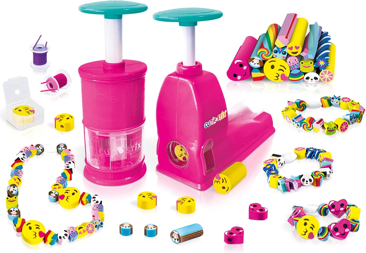 KIT PER LA CREAZIONE DI BRACCIALI: Il set per la creazione di gioielli Cutie Stix offre tutto il necessario per iniziare nell'arte della creazione di gioielli. Include 15 Stix colorati, una stazione di taglio, una bacchetta, due stampi da taglio e altro ancora per un'esperienza completa. LABORATORIO DI TAGLIO STIX: Grazie al laboratorio di taglio integrato, taglia gli Stix per creare perle uniche. Quindi utilizza il Laboratorio di piercing per preparare le perline da infilare, rendendo la creazione di gioielli accessibile e divertente. ATTIVITÀ MANUALE CREATIVA: con questo laboratorio creativo realizzerai una varietà di gioielli come bracciali, collane, anelli e orecchini a clip. Questo kit hobby creativo ti consente di creare più di 15 gioielli diversi, ideali per personalizzare il tuo stile o come regalo. IDEA REGALO COMPLEANNO: Perfetto per i bambini dai 6 anni in su, questo kit per la creazione di gioielli sviluppa le capacità motorie e stimola la creatività attraverso la progettazione di gioielli e l'utilizzo di vari strumenti e tecniche in completa sicurezza. È un'ottima idea per un regalo di compleanno o di Natale che delizierà i bambini. CON SCATOLA DI STOCCAGGIO: Questo kit per la creazione di gioielli viene fornito con scatole di plastica per conservare le perline e i gioielli creati, oltre a bobine di filo elastico per mantenere tutto organizzato e pronto per la prossima sessione di creazione.