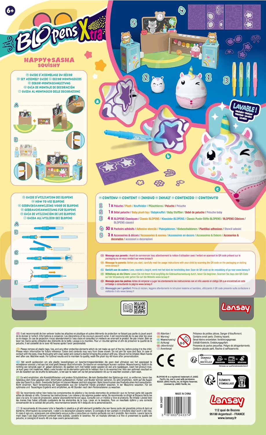 SET CREATIVO UNICORNO DA PERSONALIZZARE : Happy Sasha invita i bimbi a decorare uno squishy unicorno con Blopens – sviluppa precisione e fantasia. MONDO UNICORNO DOLCE E MAGICO : Con colori tenui e design da favola, Happy Sasha è un’attività rilassante e stimolante. I bambini creano più volte e mostrano con orgoglio il loro squishy. UN REGALO ORIGINALE PER BAMBINI DAI 5 ANNI : Il set Happy Sasha è il regalo perfetto per feste. Unisce relax, creatività e mondo unicorno. I bambini lo reinventano ogni volta con nuovi colori. ATTIVITÀ RILASSANTE E DI FIDUCIA : Lo squishy diventa un oggetto calmante. Personalizzarlo rafforza la fiducia in sé e incoraggia l’espressione creativa in modo sicuro. UN KIT CHE STIMOLA L’IMMAGINAZIONE : Con i colori pastello, mondo unicorno e inchiostri a spruzzo, Happy Sasha porta i bambini in un mondo fiabesco, stimolando fantasia e coordinazione.