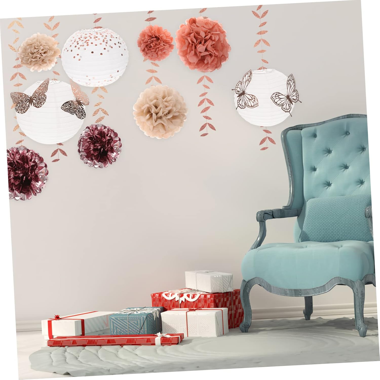 Lanterne di carta per matrimoni: leggere e compatte, facili da appendere, possono avere un buon effetto decorativo, decorazioni con pompon in tessuto Kit di decorazioni per feste: le decorazioni sono realizzate in materiale cartaceo, leggere, resistenti all'uso prolungato, decorazioni da appendere alle feste Lanterna di carta per matrimonio: graziosi pompon e lanterne, decorati con farfalle e foglie, danno vita alla tua festa, fiori di carta velina Lanterne sospese per feste: non solo per feste di compleanno, ma anche per anniversari, matrimoni, shower e altri eventi speciali, decorazioni per feste Ciondoli di carta per compleanno: possono essere utilizzati anche per carnevale, festival, balli, spettacoli teatrali come un bel supporto fotografico, ciondoli appesi per feste