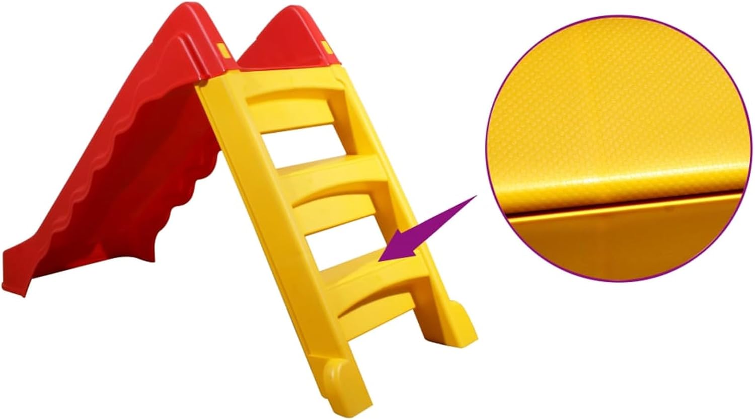Offrite ai vostri piccoli ore di gioco e divertimento con i nostri scivoli pieghevoli. Questo scivolo è un modo eccellente per promuovere ogni giorno la forma fisica, la coordinazione e l'equilibrio. Questo centro giochi è realizzato in plastica resistente ai raggi UV e agli agenti atmosferici, che è atossica, inodore e durevole. Può essere utilizzato all'interno o all'esterno. La scala posteriore aiuta i Bam bini a raggiungere facilmente la cima.