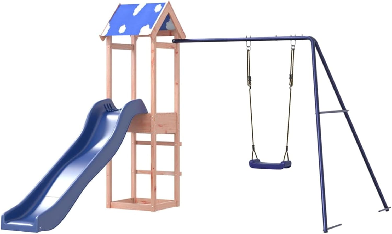 Materiale durevole: Questo parco giochi da giardino è realizzato in legno massello di douglas. Il legno massello di douglas è noto per la sua resistenza e durata. Il suo colore ricco bruno-rossastro e le sue venature uniche emanano un'atmosfera calda e naturale. Con una buona stabilità e resistenza agli agenti atmosferici, è ideale per la realizzazione di mobili per ambienti interni ed esterni. Telaio robusto in legno: La struttura in legno della casetta da giardino garantisce robustezza e stabilità.
