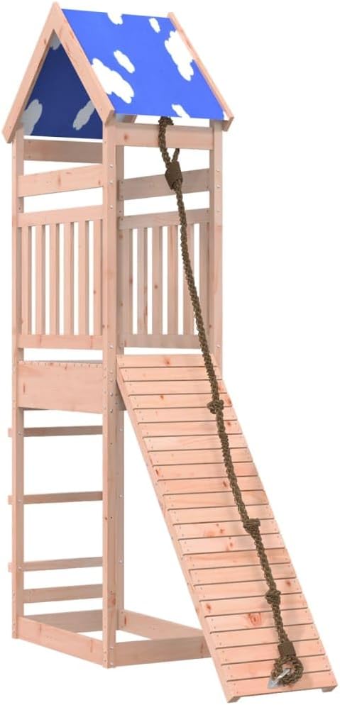 Materiale resistente: Questa struttura da arrampicata è realizzata in legno massello di douglas. Il legno massello di douglas è noto per la sua resistenza e durata. Il suo colore ricco bruno-rossastro e le sue venature uniche emanano un'atmosfera calda e naturale. Con una buona stabilità e resistenza agli agenti atmosferici, è ideale per la realizzazione di mobili per ambienti interni ed esterni. Telaio robusto in legno: La struttura in legno della casetta da giardino garantisce robustezza e stabilità.