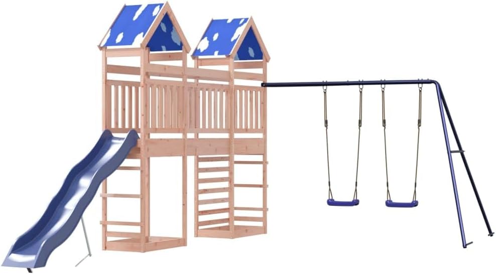 Materiale durevole: Questo parco giochi da giardino è realizzato in legno massello di douglas. Il legno massello di douglas è noto per la sua resistenza e durata. Il suo colore ricco bruno-rossastro e le sue venature uniche emanano un'atmosfera calda e naturale. Con una buona stabilità e resistenza agli agenti atmosferici, è ideale per la realizzazione di mobili per ambienti interni ed esterni. Telaio robusto in legno: La struttura in legno della casetta da giardino garantisce robustezza e stabilità.