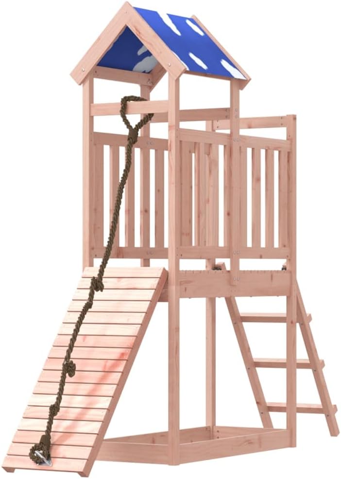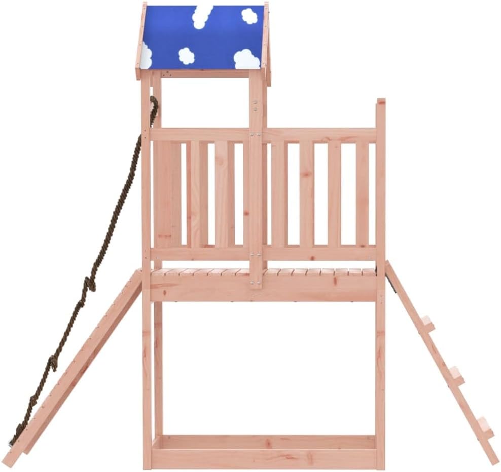 Materiale resistente: Questa struttura da arrampicata è realizzata in legno massello di douglas. Il legno massello di douglas è noto per la sua resistenza e durata. Il suo colore ricco bruno-rossastro e le sue venature uniche emanano un'atmosfera calda e naturale. Con una buona stabilità e resistenza agli agenti atmosferici, è ideale per la realizzazione di mobili per ambienti interni ed esterni. Telaio robusto in legno: La struttura in legno della casetta da giardino garantisce robustezza e stabilità.