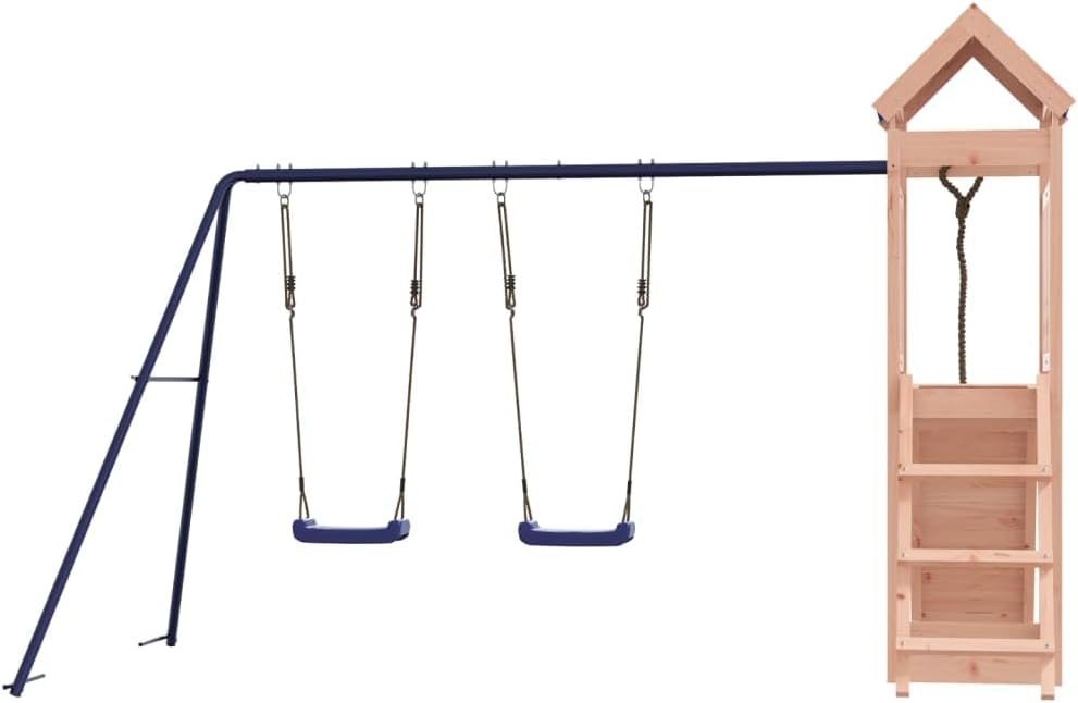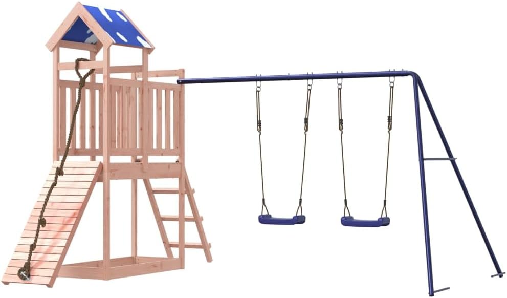 Materiale durevole: Questo parco giochi da giardino è realizzato in legno massello di douglas. Il legno massello di douglas è noto per la sua resistenza e durata. Il suo colore ricco bruno-rossastro e le sue venature uniche emanano un'atmosfera calda e naturale. Con una buona stabilità e resistenza agli agenti atmosferici, è ideale per la realizzazione di mobili per ambienti interni ed esterni. Telaio robusto in legno: La struttura in legno della casetta da giardino garantisce robustezza e stabilità.