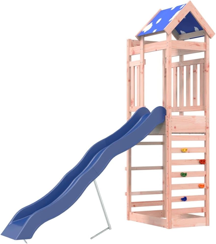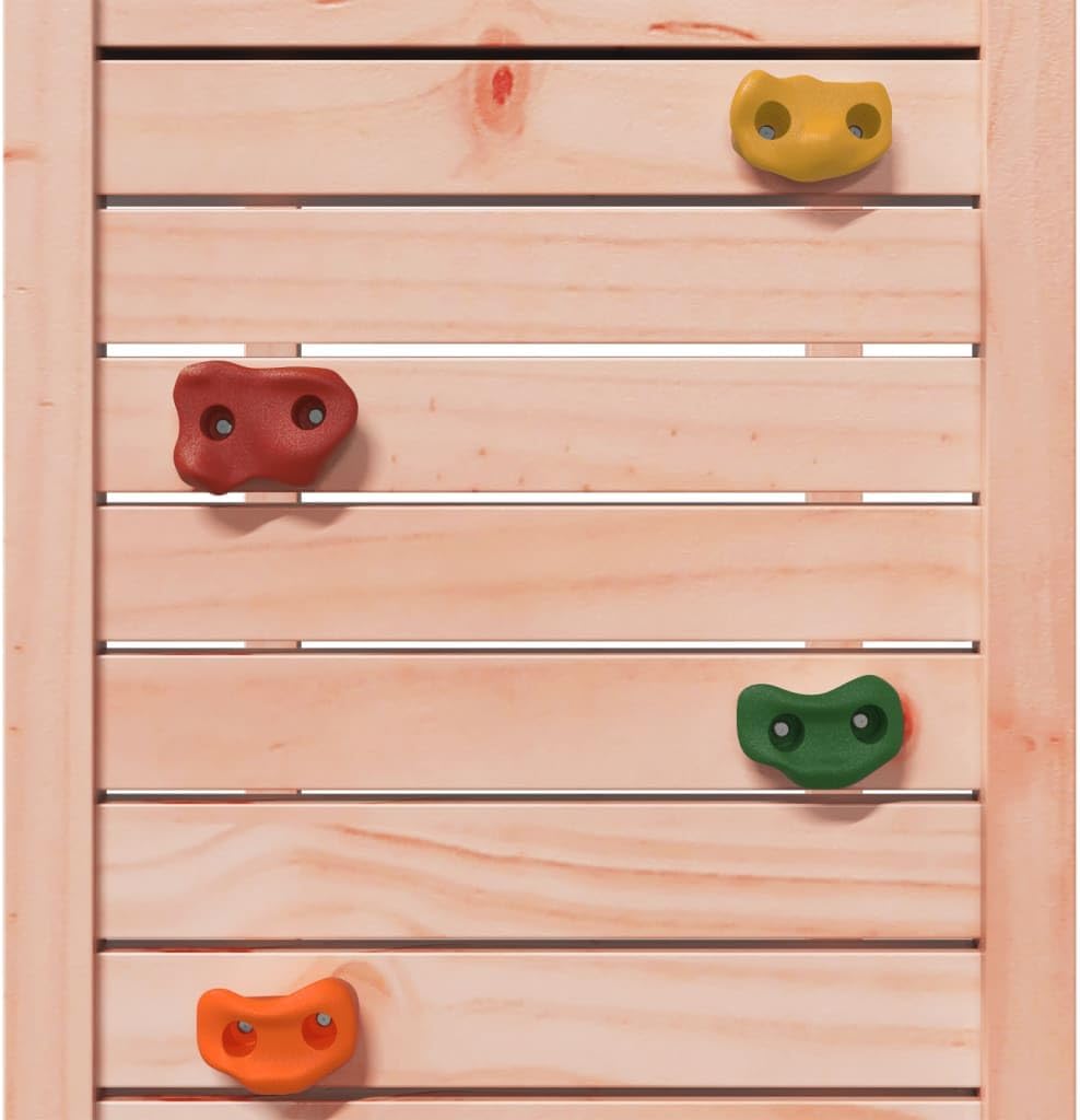 Materiale resistente: Questa struttura da arrampicata è realizzata in legno massello di douglas. Il legno massello di douglas è noto per la sua resistenza e durata. Il suo colore ricco bruno-rossastro e le sue venature uniche emanano un'atmosfera calda e naturale. Con una buona stabilità e resistenza agli agenti atmosferici, è ideale per la realizzazione di mobili per ambienti interni ed esterni. Telaio robusto in legno: La struttura in legno della casetta da giardino garantisce robustezza e stabilità.