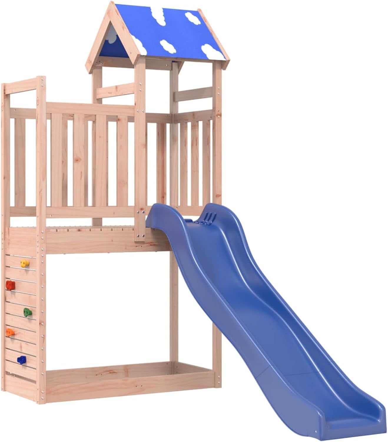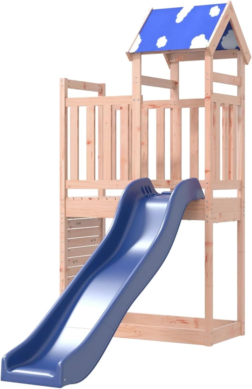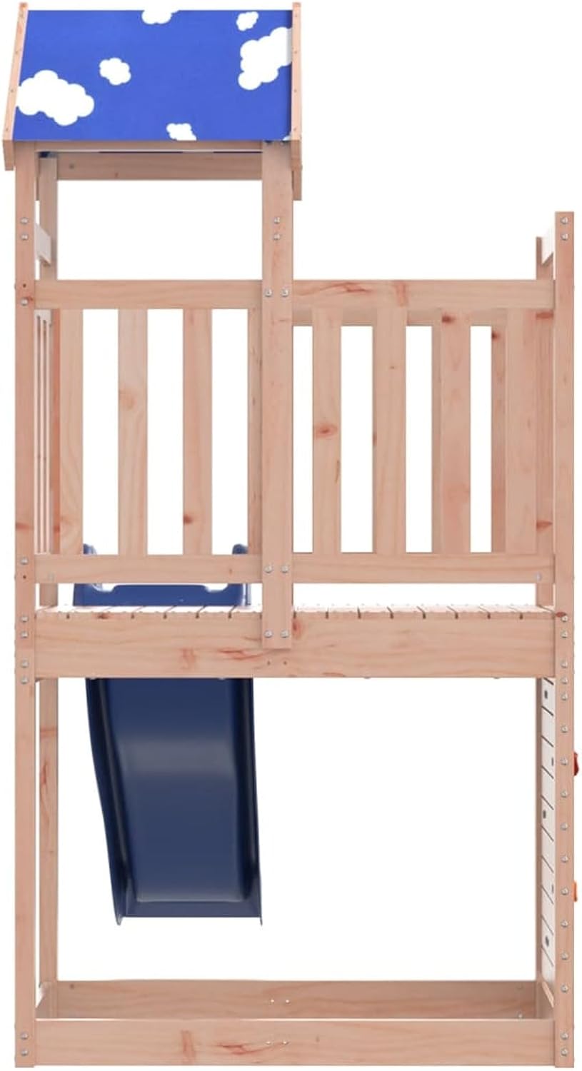Materiale resistente: Questa struttura da arrampicata è realizzata in legno massello di douglas. Il legno massello di douglas è noto per la sua resistenza e durata. Il suo colore ricco bruno-rossastro e le sue venature uniche emanano un'atmosfera calda e naturale. Con una buona stabilità e resistenza agli agenti atmosferici, è ideale per la realizzazione di mobili per ambienti interni ed esterni. Telaio robusto in legno: La struttura in legno della casetta da giardino garantisce robustezza e stabilità.