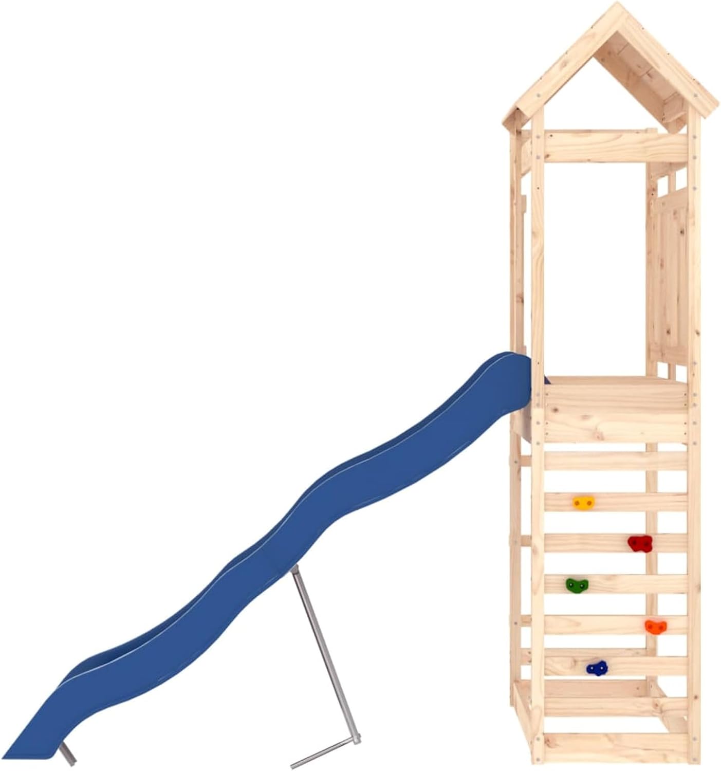 Questo set da gioco per esterni in legno trasforma il vostro cortile in un parco giochi per avventure fantasiose. Legno massello di pino: Questa struttura per l'arrampicata da giardino è realizzata in legno massello di pino. Il legno massello di pino è un bellissimo materiale naturale. Il legno di pino ha le venature dritte e i nodi conferiscono al materiale il suo caratteristico aspetto rustico. Telaio robusto e stabile: Il telaio in legno del set da gioco garantisce robustezza e stabilità.