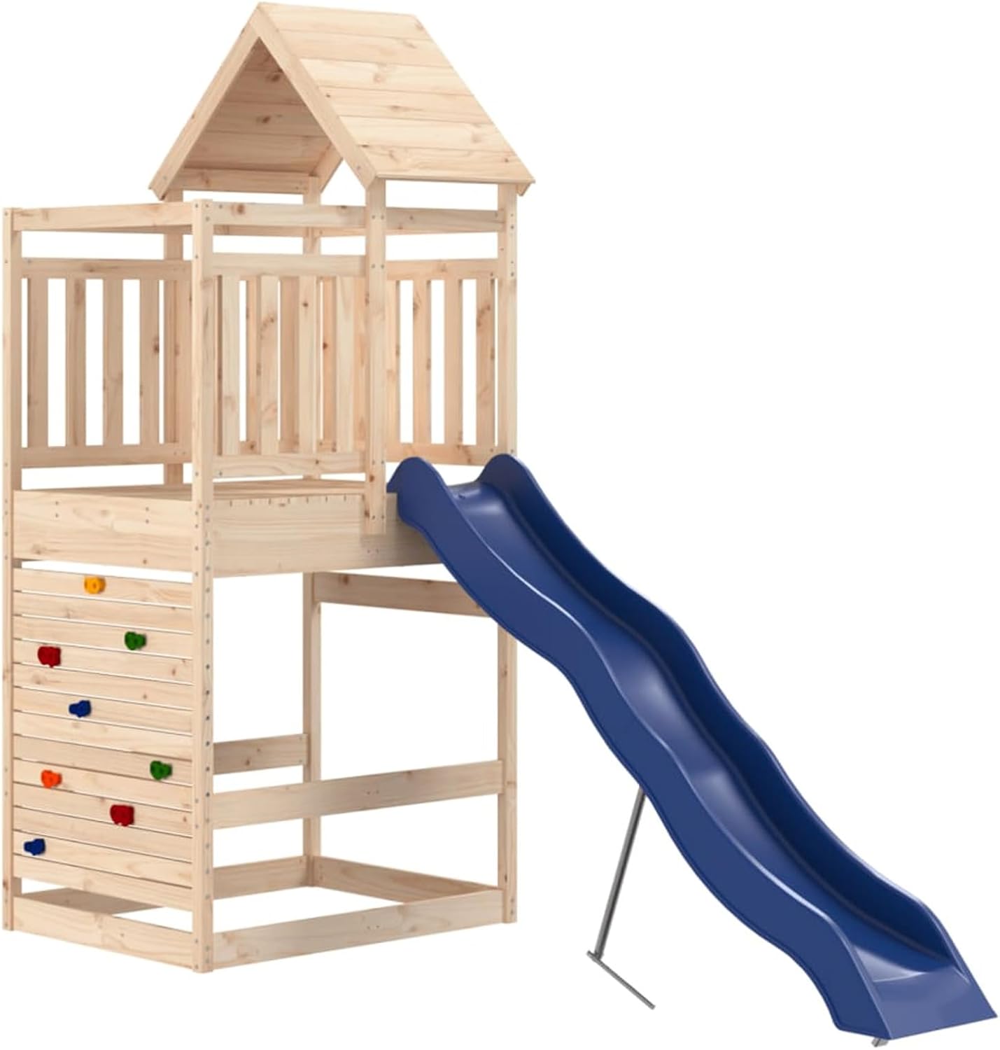 Questo set da gioco per esterni in legno trasforma il vostro cortile in un parco giochi per avventure fantasiose. Legno massello di pino: Questa struttura per l'arrampicata da giardino è realizzata in legno massello di pino. Il legno massello di pino è un bellissimo materiale naturale. Il legno di pino ha le venature dritte e i nodi conferiscono al materiale il suo caratteristico aspetto rustico. Telaio robusto e stabile: Il telaio in legno del set da gioco garantisce robustezza e stabilità.