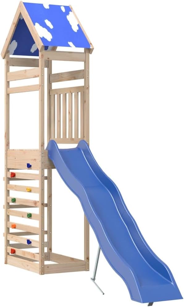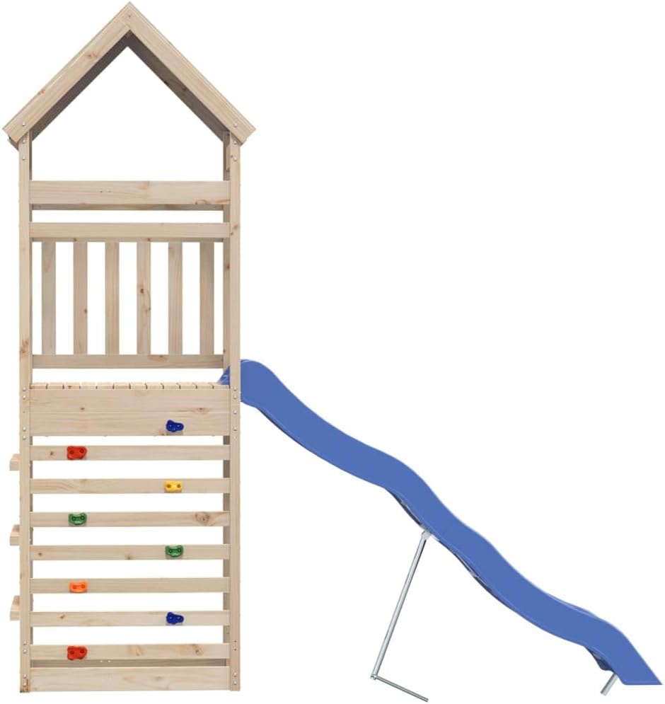 Materiale resistente: Questo parco giochi è realizzato in legno massello di pino. Il legno massello di pino è noto per la sua resistenza e durata. Le sue venature dritte e i suoi nodi caratteristici contribuiscono al suo fascino rustico. Telaio robusto in legno: La struttura in legno della casetta da giardino garantisce robustezza e stabilità. Centri multiattività: La struttura da arrampicata è dotata di una piattaforma di 118 cm di altezza e si distingue per lo scivolo a onde, una parete da arrampicata e la sabbiera.