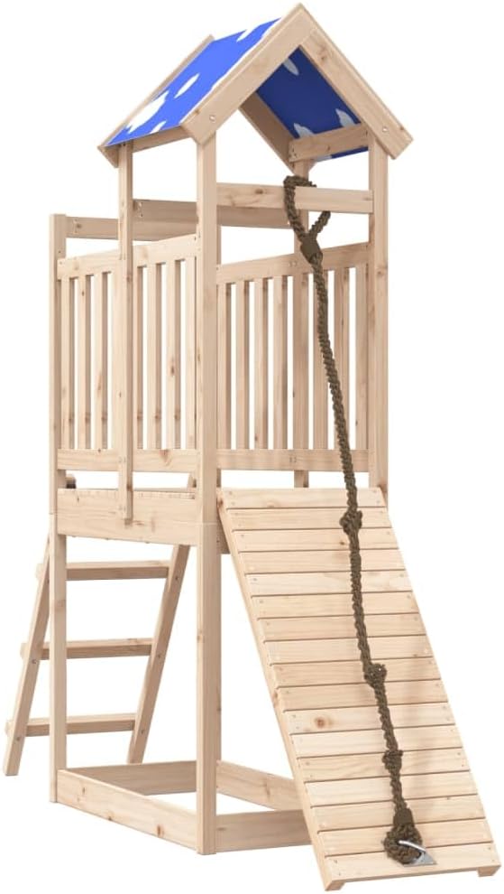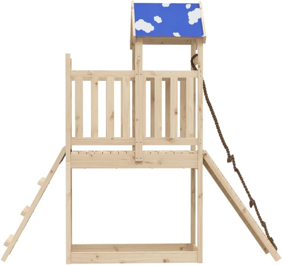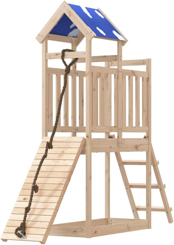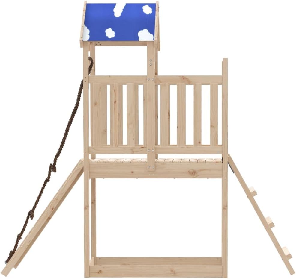 Materiale resistente: Questo parco giochi è realizzato in legno massello di pino. Il legno massello di pino è noto per la sua resistenza e durata. Le sue venature dritte e i suoi nodi caratteristici contribuiscono al suo fascino rustico. Telaio robusto in legno: La struttura in legno della casetta da giardino garantisce robustezza e stabilità. Centri multiattività: Il parco giochi è dotato di una piattaforma alta 90 cm e si distingue per la parete da arrampicata, una scala e una sabbiera.