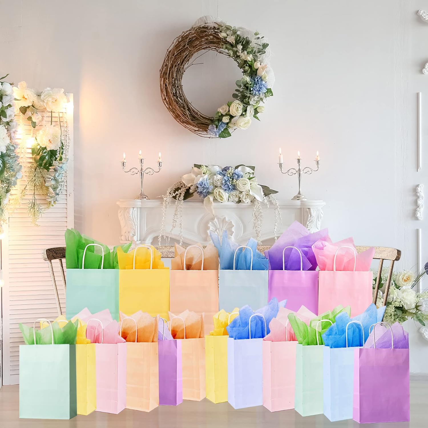 🎁[Pacchetto incluso]: include 12 piccoli sacchetti regalo con manici + 12 pezzi di carta da imballaggio, 6 graziosi colori di macaron (rosa, viola, giallo, azzurro, verde menta, arancione albicocca) e 2 pezzi di ogni colore. Colori brillanti e ricchi possono soddisfare le tue esigenze in diverse occasioni 🍨[Misura specifica]: tutte le dimensioni dei sacchetti regalo sono 15,5 x 8 x 22 cm (L x L x A), esclusa l'altezza del manico. Tutti i formati di carta velina sono 76 x 50 cm. Perfetto per regali di taglia S/M come caramelle, biscotti, rossetto, profumo, candele, ecc. 🍭[Qualità Premium]: i nostri sacchetti regalo in carta velina sono realizzati con carta di alta qualità, resistente e durevole, non facile da rompere, nessun odore sgradevole, facile da sostenere e trasportare, può essere riutilizzato. Nel complesso, l'abbinamento è molto carino ed elegante, perfetto per confezionare regali 🎉[Sacchetto di carta fai da te]: i nostri sacchetti di carta colorati non hanno motivi, puoi aggiungere la tua creatività dipingendo, etichettando, adesivi, ecc. per creare il tuo sacchetto regalo personalizzato 🌈[Ampiamente usato]: i nostri sacchetti regalo sono perfetti per confezioni regalo di compleanno, matrimonio, baby shower, San Valentino, Pasqua, laurea e altre feste. Ottimo anche per sacchetti regalo, sacchetti per dolcetti, sacchetti per caramelle, sacchetti per feste, sacchetti per la spesa, sacchetti per la vendita al dettaglio, sacchetti per la conservazione