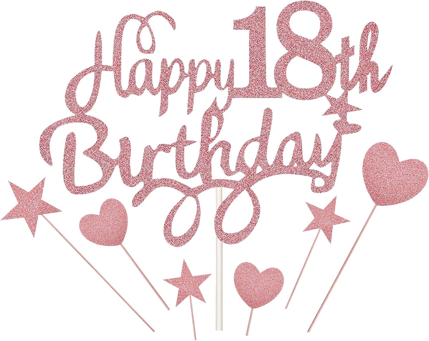 Incluso nel pacchetto: riceverai 1 pezzo di topper per torta felice del 18° compleanno dorato, 3 pezzi di topper per torta a stella, 3 pezzi di topper per torta a cuore, 7 pezzi in totale. Toppers per torta dorati accattivanti che rallegrano la tua festa di compleanno. Alta qualità: i nostri toppers per torta di compleanno glitterati sono realizzati in cartone di alta qualità e stuzzicadenti per uso alimentare, belli e resistenti, i glitter sono molto robusti e non si rovesciano sul cibo, portando sorpresa alla tua festa di compleanno! Design scintillante: i toppers per torta del 18° compleanno sono realizzati con colori scintillanti, lucenti e vibranti, aggiungendo più gioia alla tua festa di compleanno e creando un'atmosfera calda e romantica. Decorazione per torta di compleanno: la decorazione per torta del 18° compleanno con glitter dorati viene utilizzata per celebrare il 18° compleanno di ragazzi e ragazze e celebrazioni speciali, per rendere la tua festa più meravigliosa. Ampiamente usato: i toppers Larfraecy sono perfetti per torte di compleanno, cupcakes, dessert, muffin, frutta, gelati o altri dolci. Sono adatti per feste di compleanno, matrimoni, baby shower, anniversari, ecc.